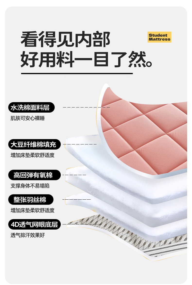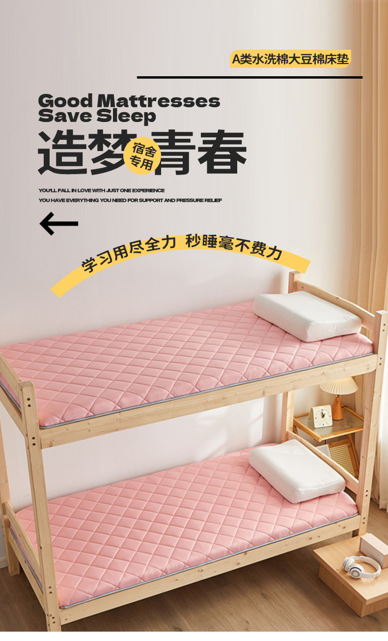 当前位置: 91家纺网 > 商品网购 > 床垫/床褥 > 普通床垫 > 寐珂 2025新款水洗棉大豆床垫 学生款 梦幻粉
