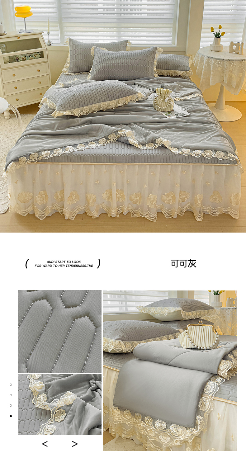 当前位置: 91家纺网 > 商品网购 > 床上用品 > 凉席 > 其他凉席 > 米莱家纺 2024新款蕾丝绣花凉席四件套 可可灰