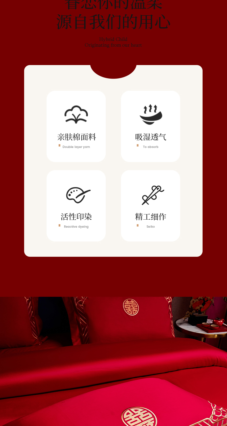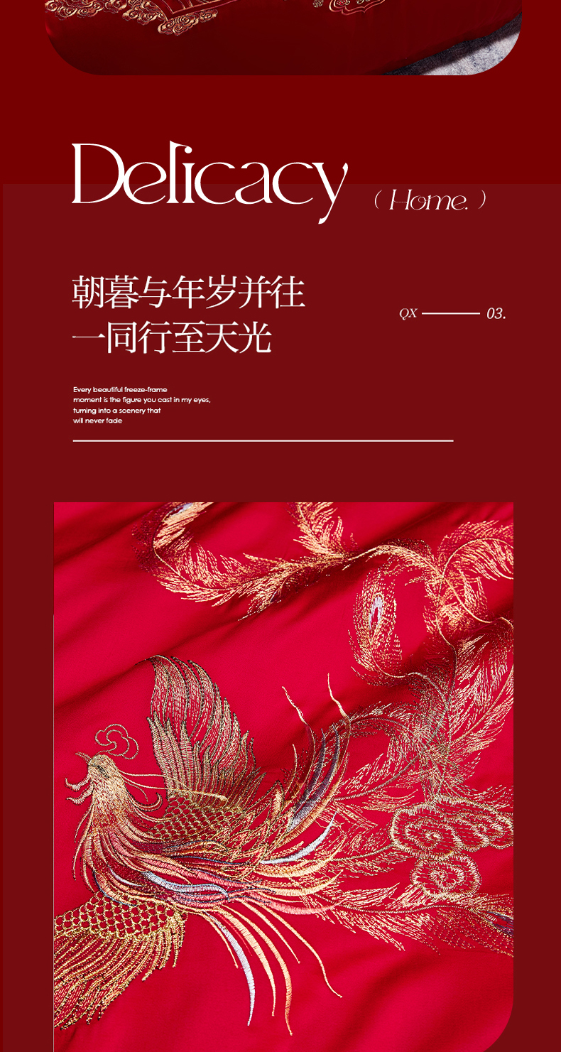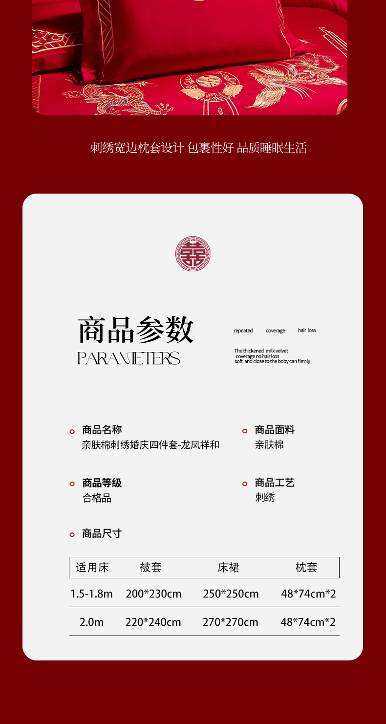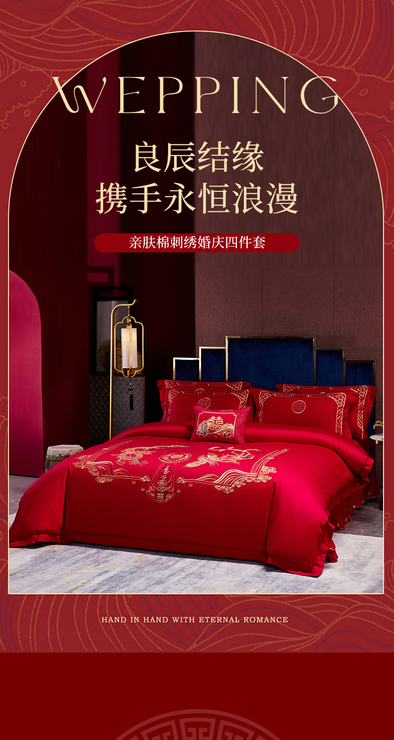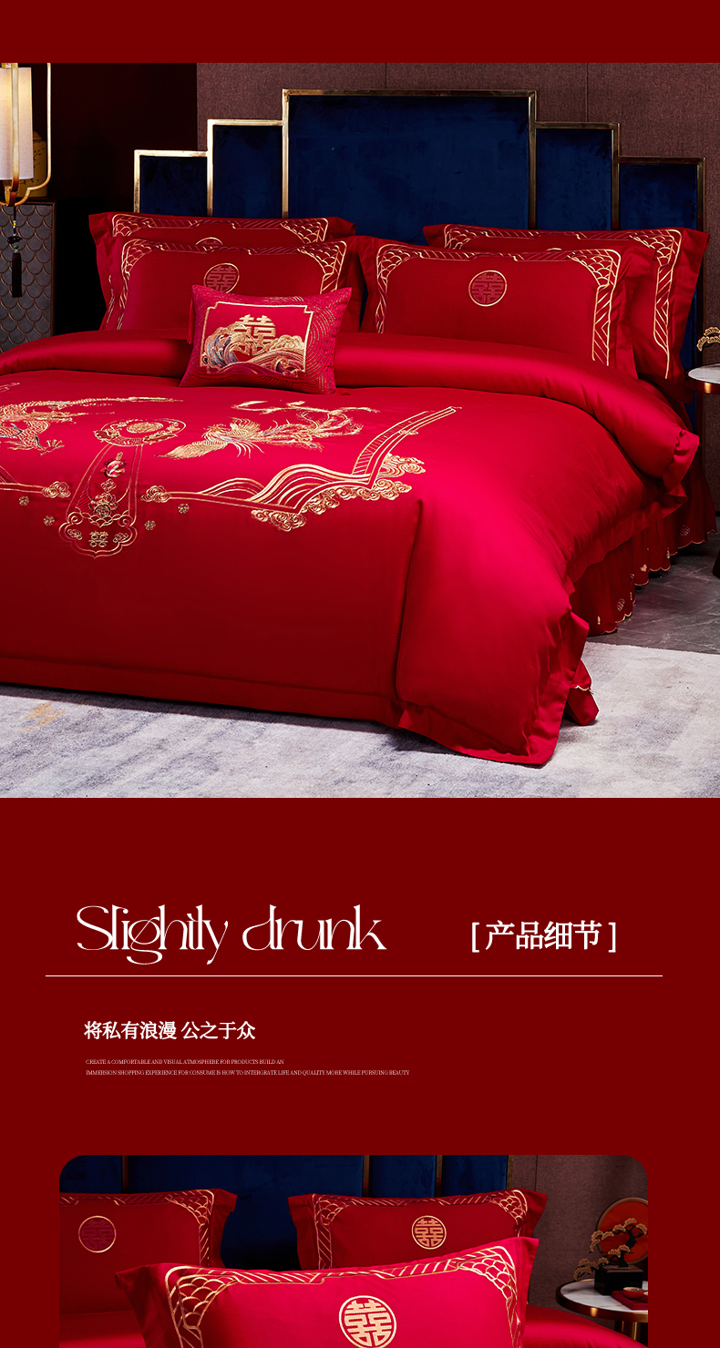 当前位置: 91家纺网 > 商品网购 > 床品套件 > 四件套 > 婚庆四件套 > 晶缦家纺 2024新款亲肤舒适棉刺绣花婚庆四件套系列 龙凤祥和-悦-绣花花边床单款