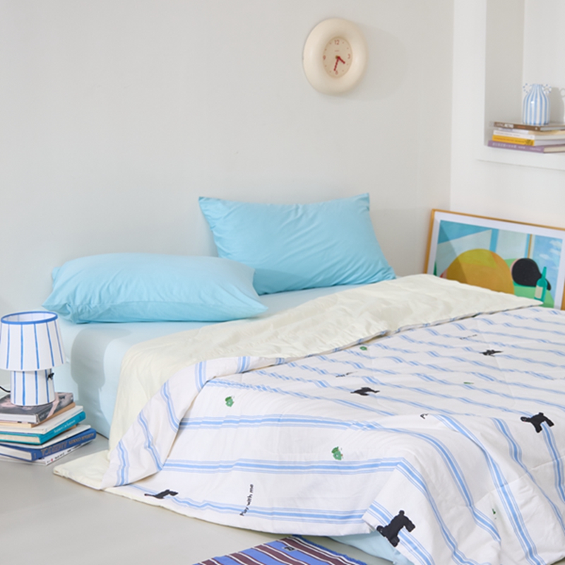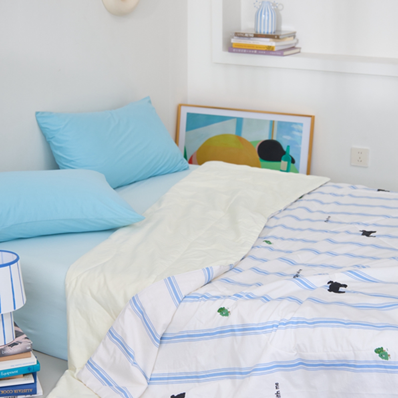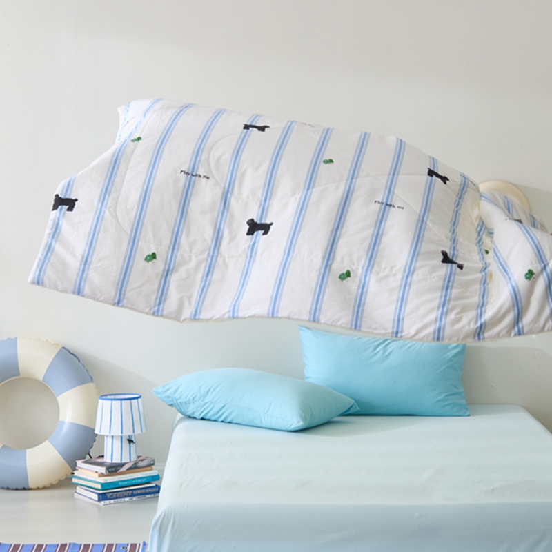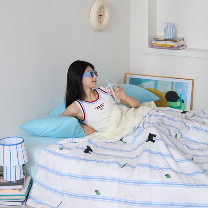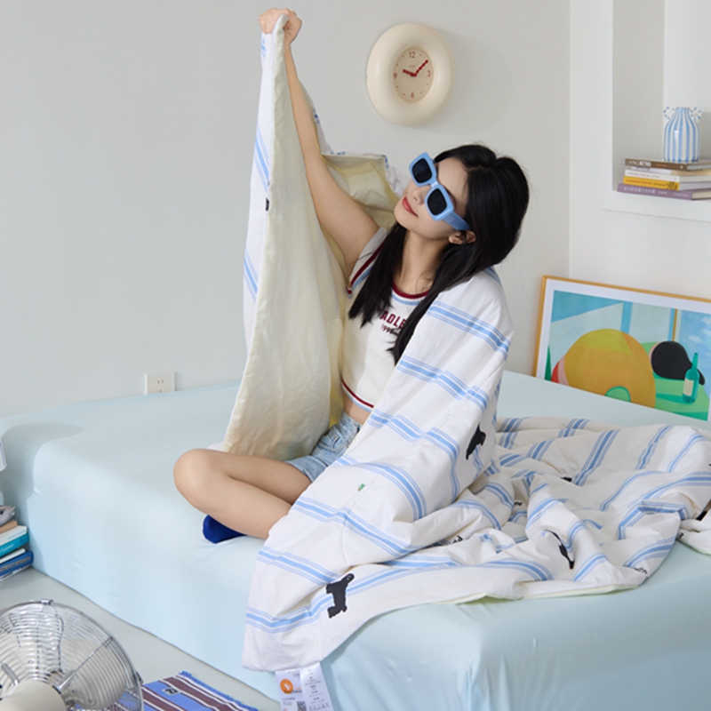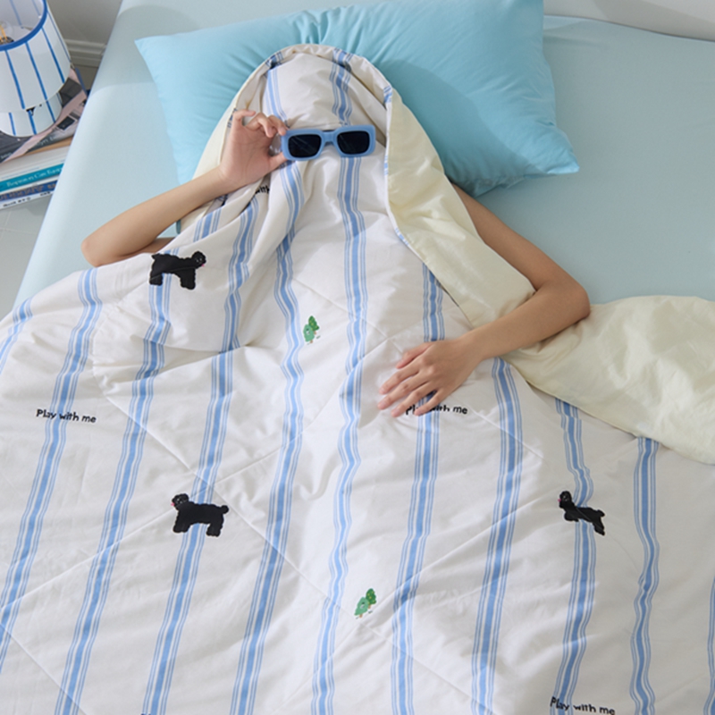 原研家居 2024新款40支全棉13070印花夏被 蓝条狗