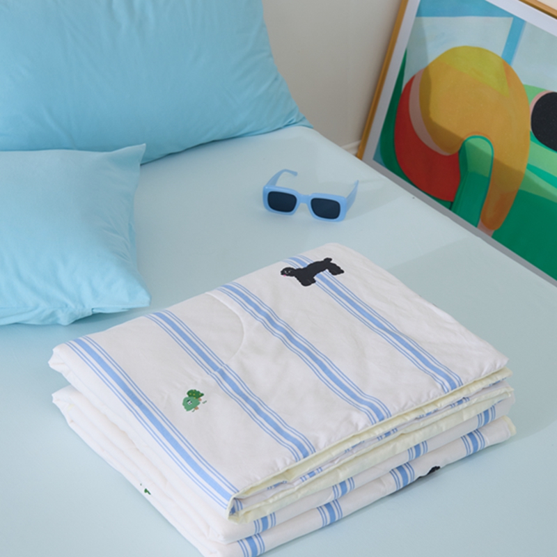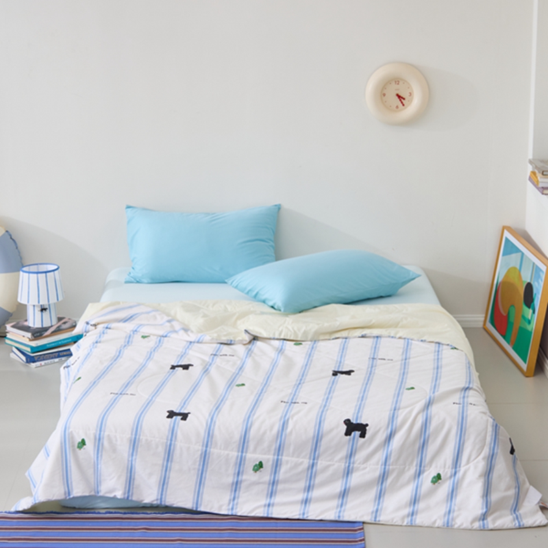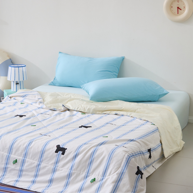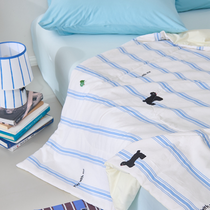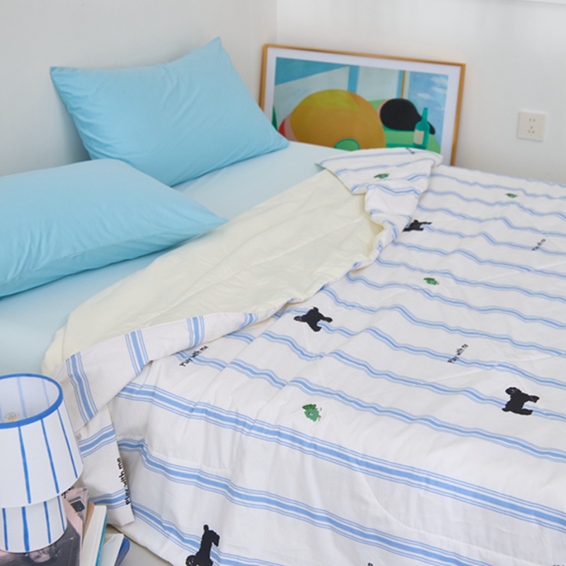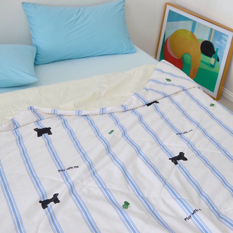 商品名称:原研家居 2024新款40支全棉13070印花夏被 蓝条狗