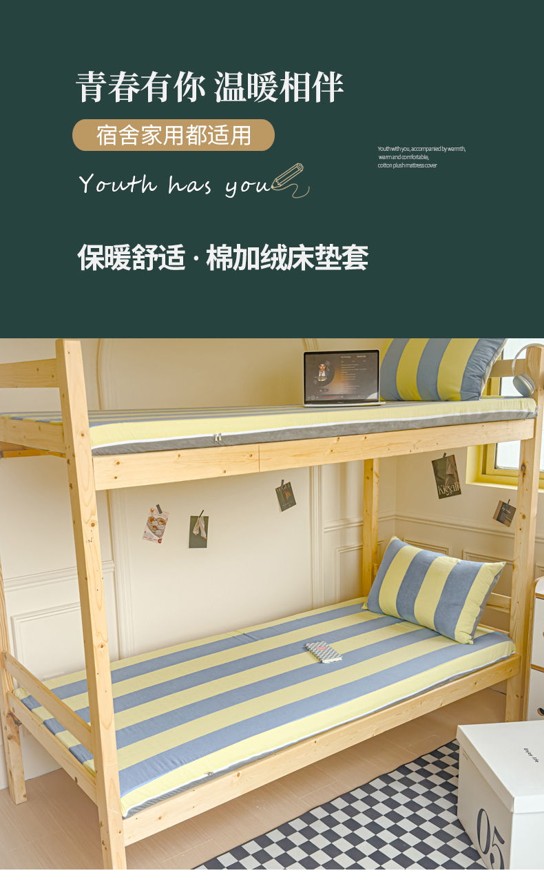 当前位置: 91家纺网 > 商品网购 > 床垫/床褥 > 普通床垫 > 金丝鸟家纺 2024新款全棉色织水洗棉水晶绒床垫套 黄蓝中条