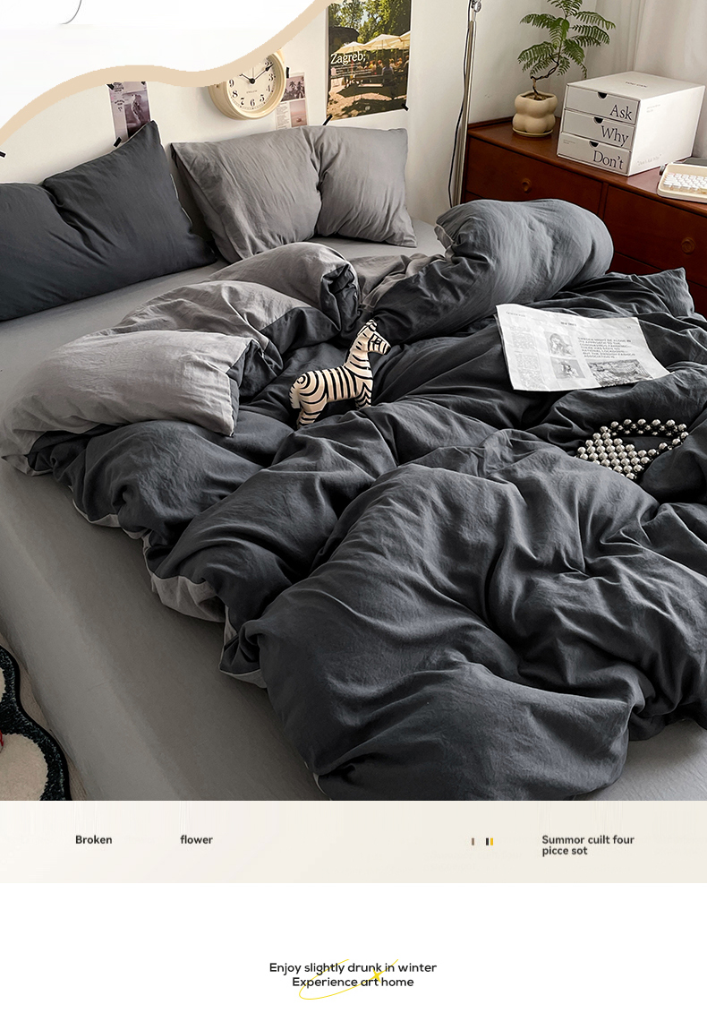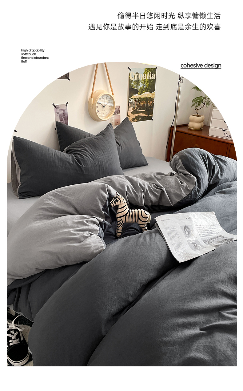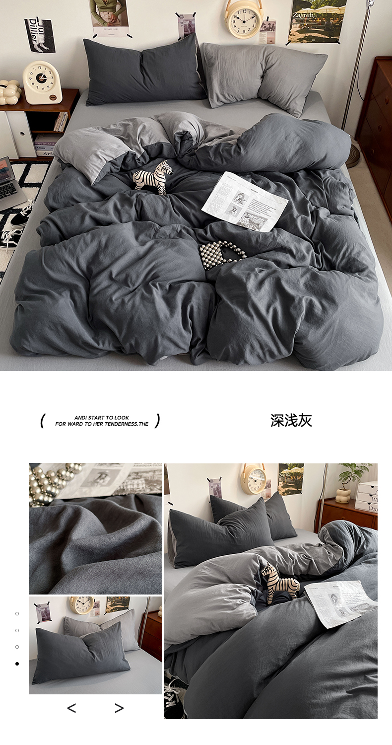 当前位置: 91家纺网 > 商品网购 > 床品套件 > 四件套 > 水洗棉四件套 > 卡迪熊家纺 2024新款ins风超柔褶皱亲肤磨毛水洗m四件套双拼系列-风格2 深浅灰