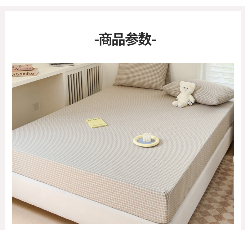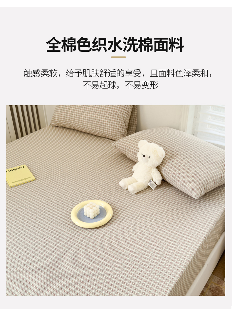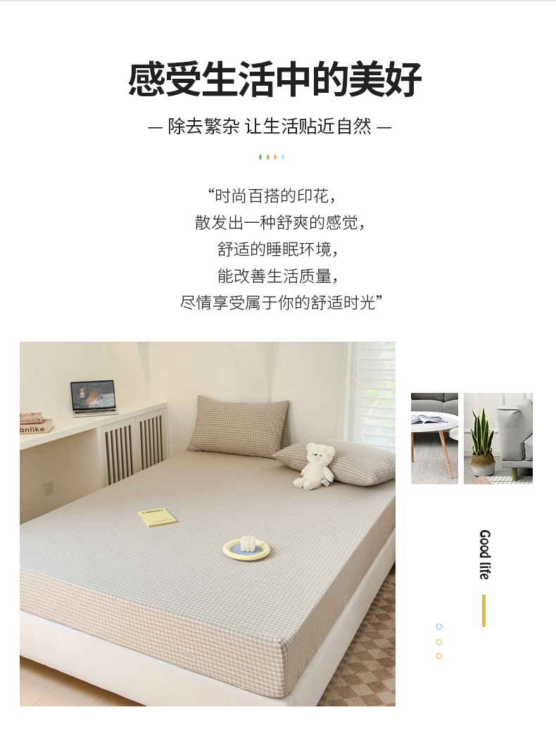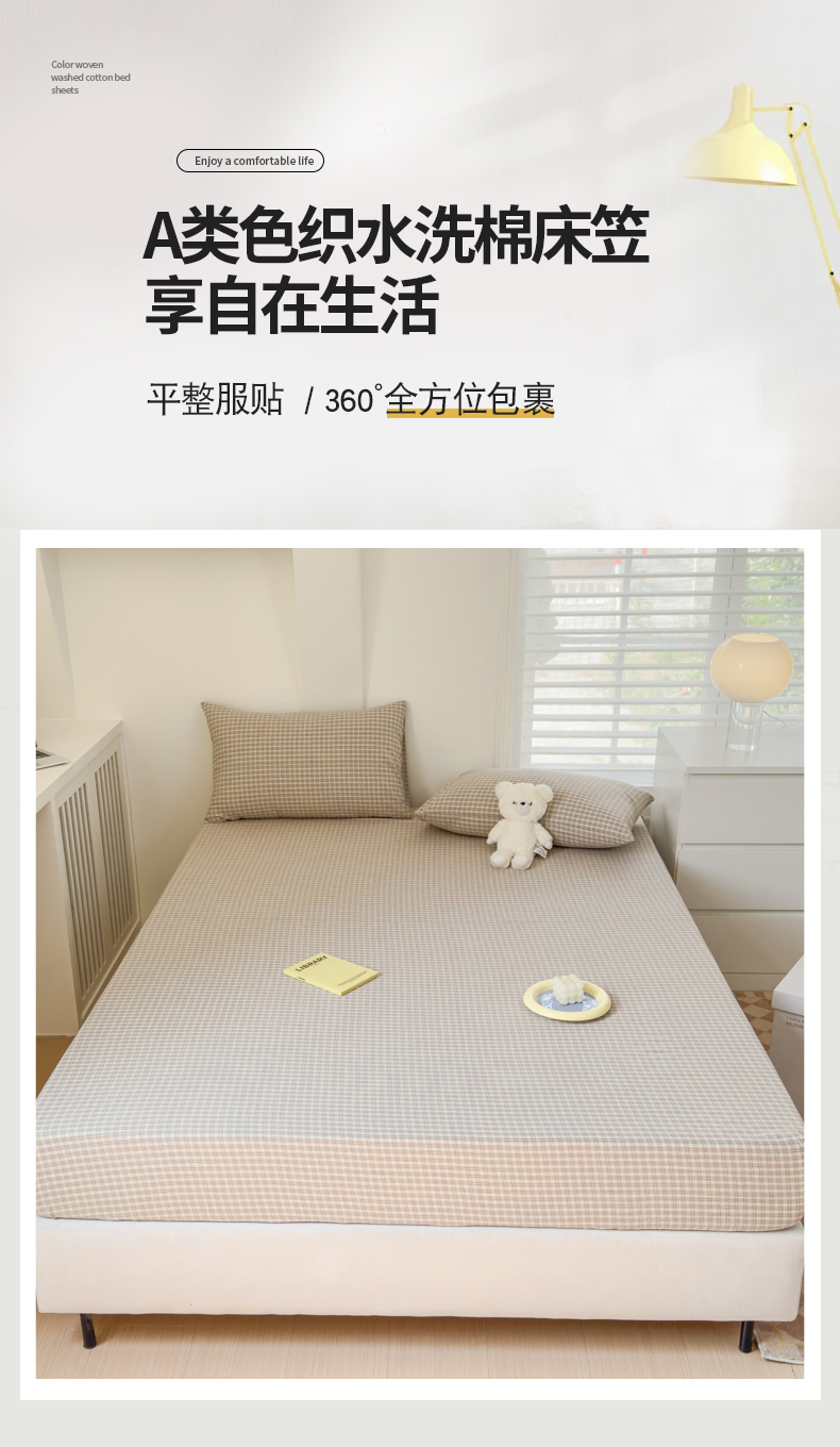 金丝鸟家纺 2024新款A类全棉色织水洗棉床笠系列 浅绿红条田格