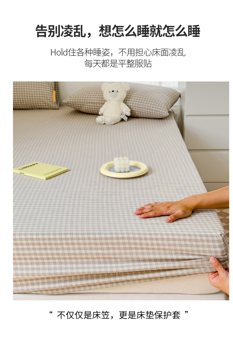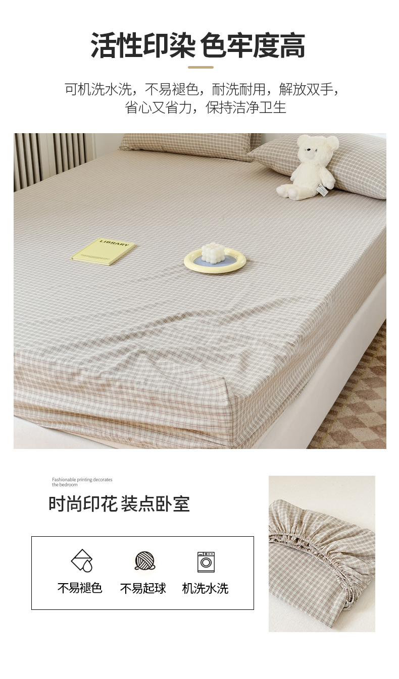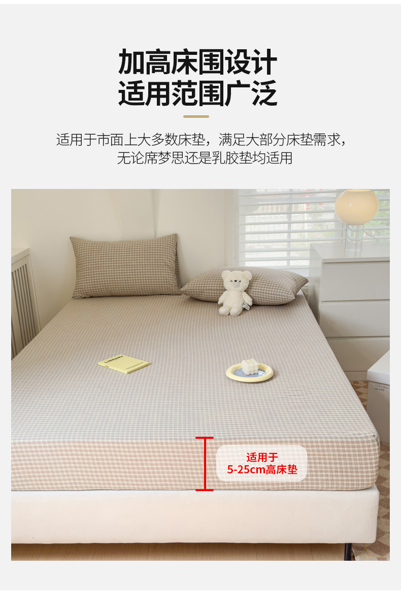 金丝鸟家纺 2024新款A类全棉色织水洗棉床笠系列 浅绿红条田格