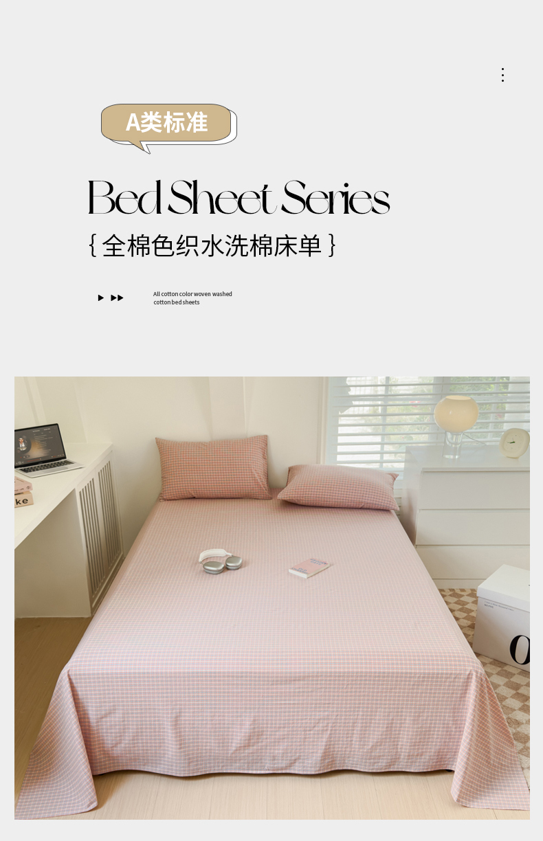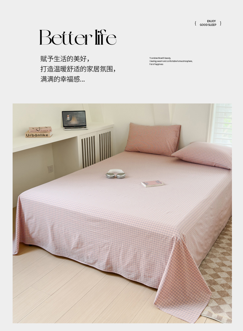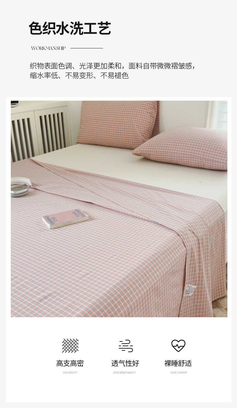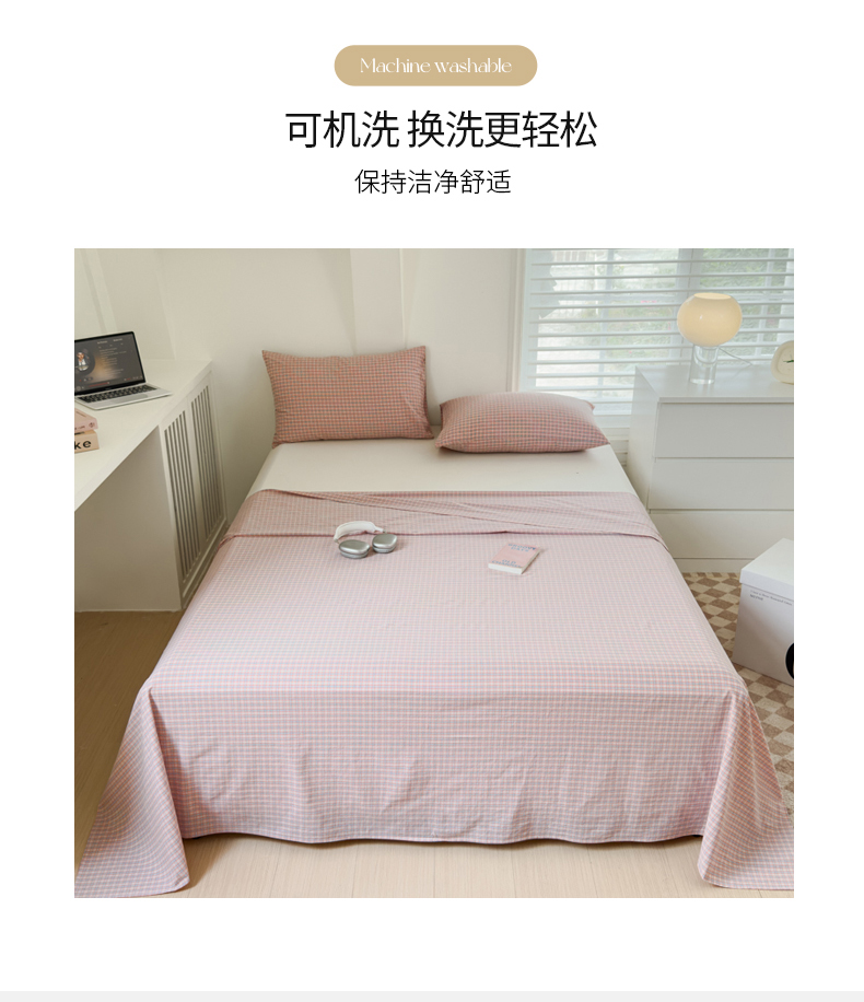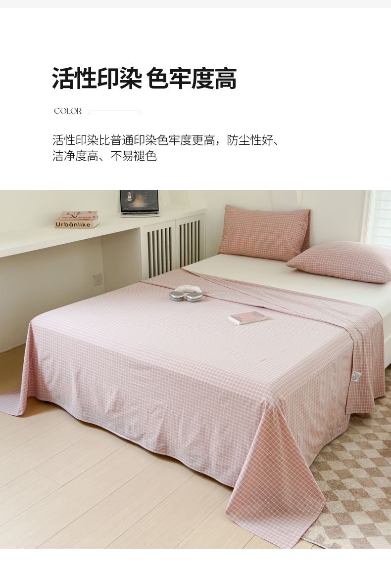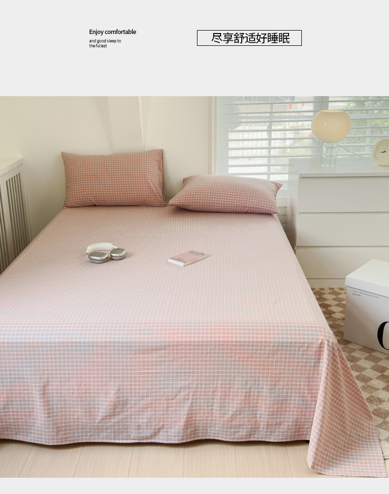 金丝鸟家纺 2024新款A类全棉色织水洗棉单床单系列 红色蓝条田格