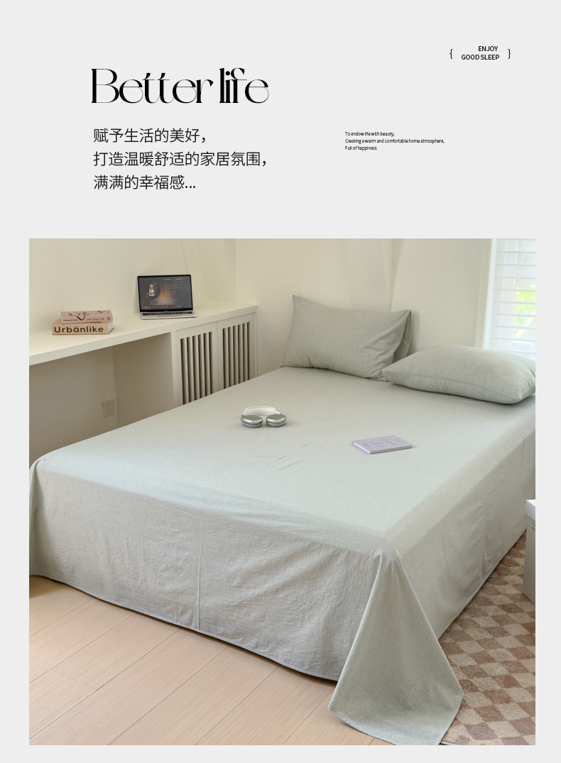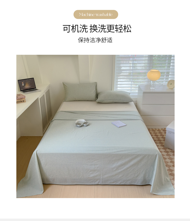 金丝鸟家纺 2024新款A类全棉色织水洗棉单床单系列 绿细条