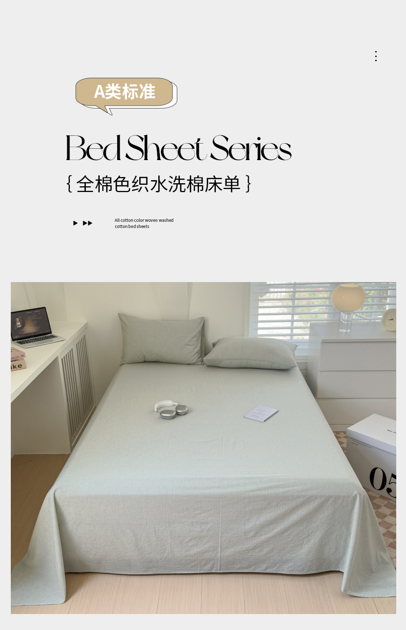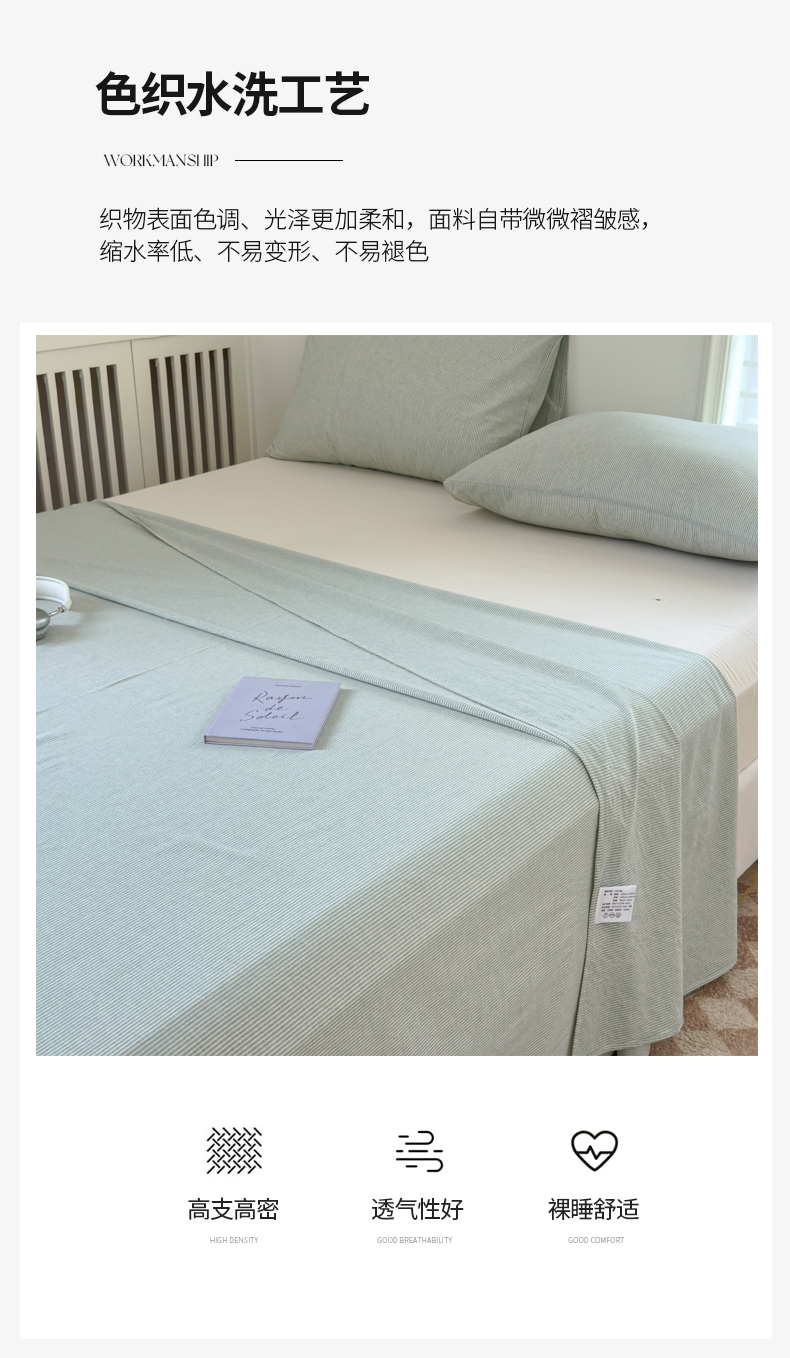• 91家纺网 家纺一手货源 找家纺 金丝鸟家纺 2024新款A类全棉色织水洗棉单床单系列 绿细条