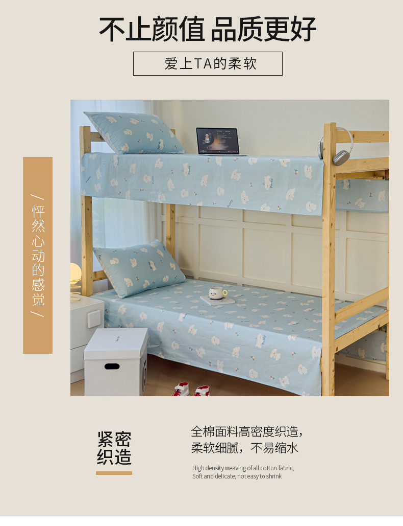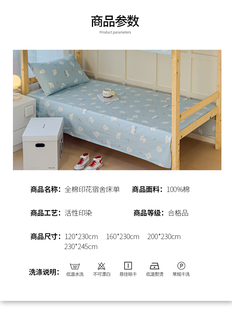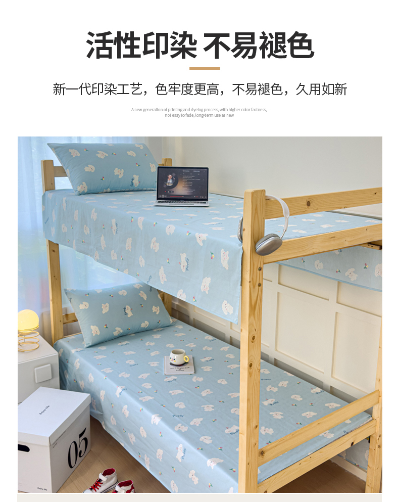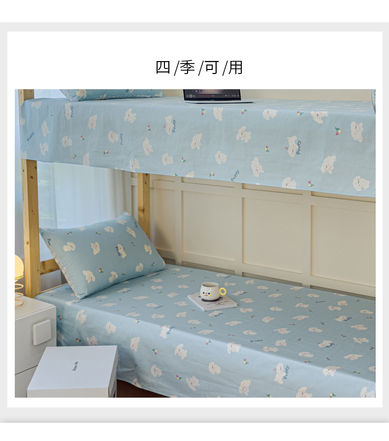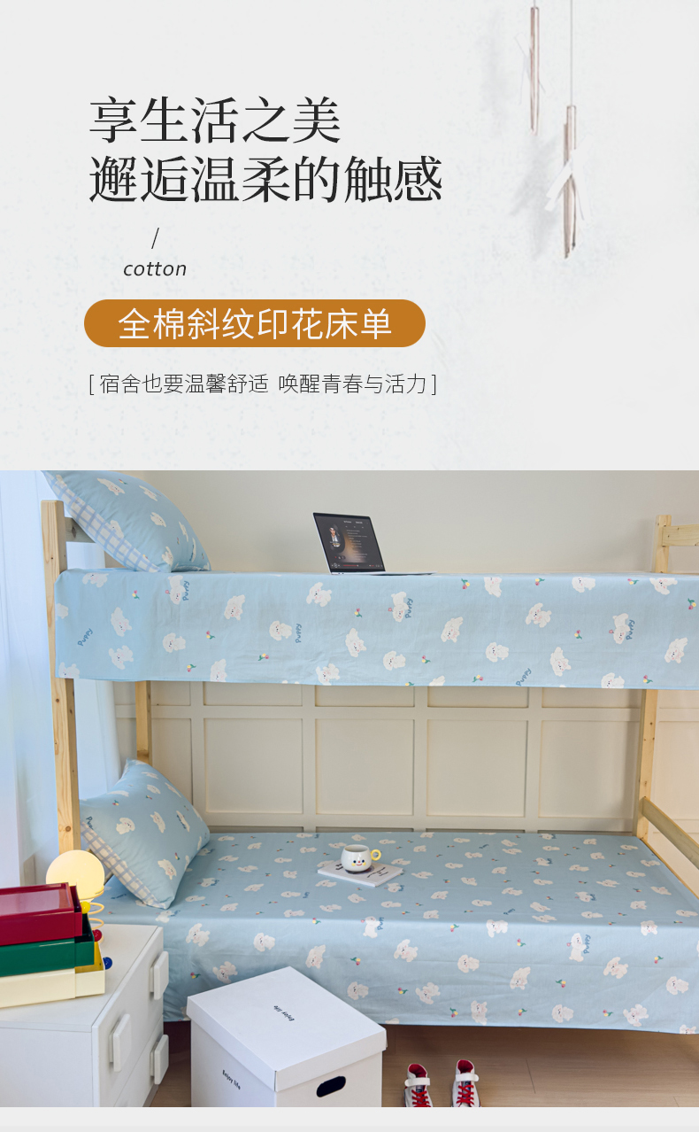 金丝鸟家纺 2024新款全棉小清新印花单床单系列(学生床) 婴儿蓝汪