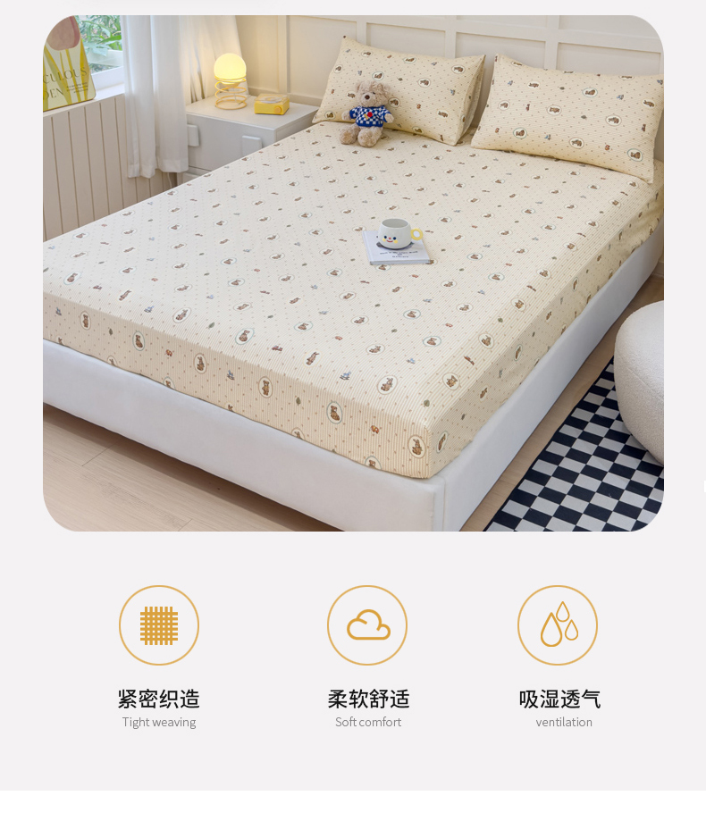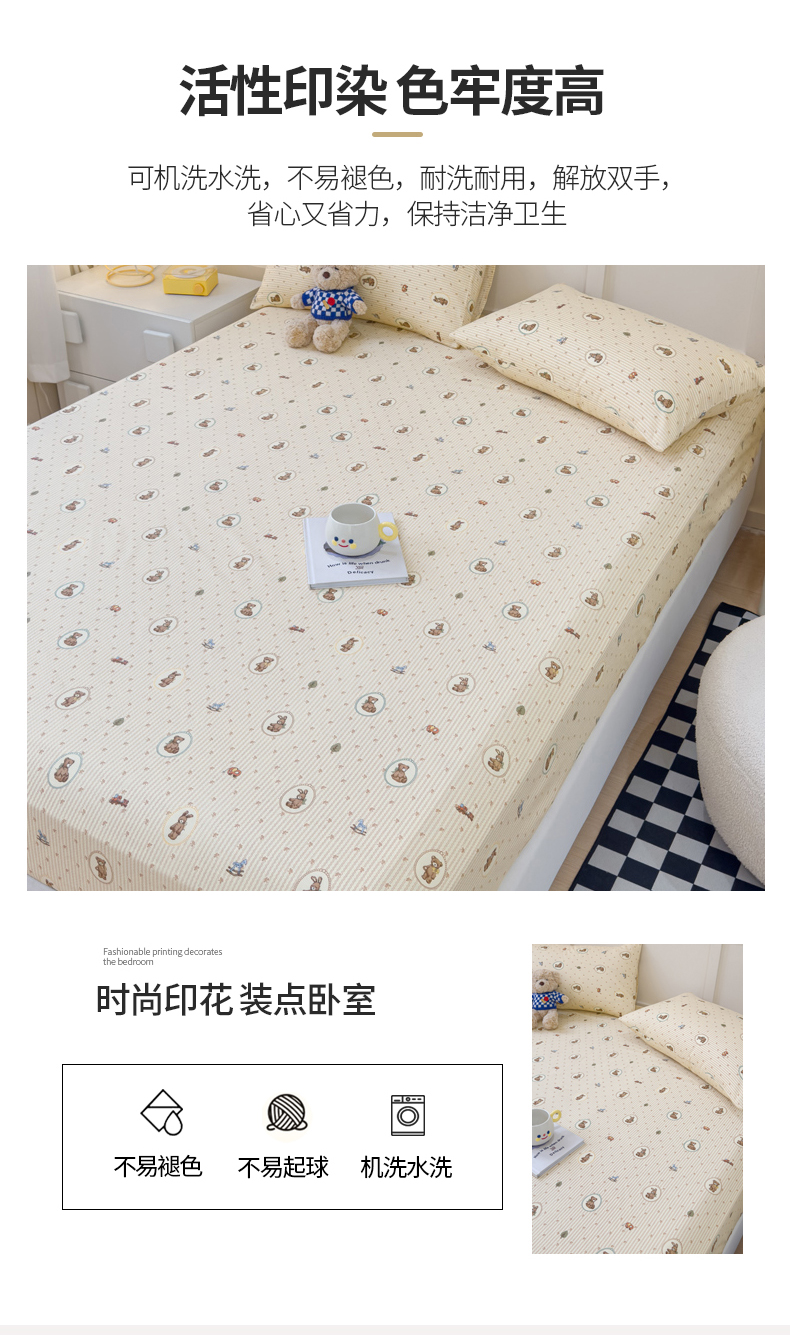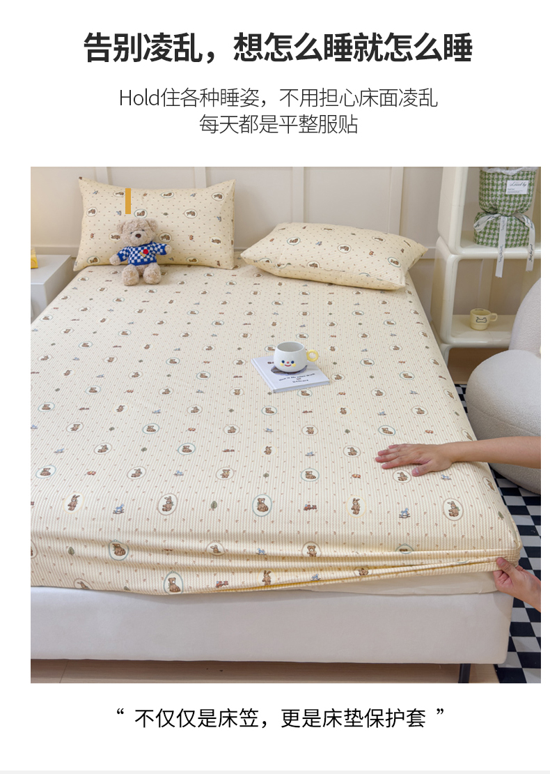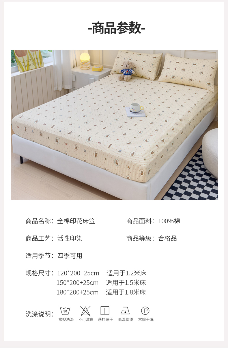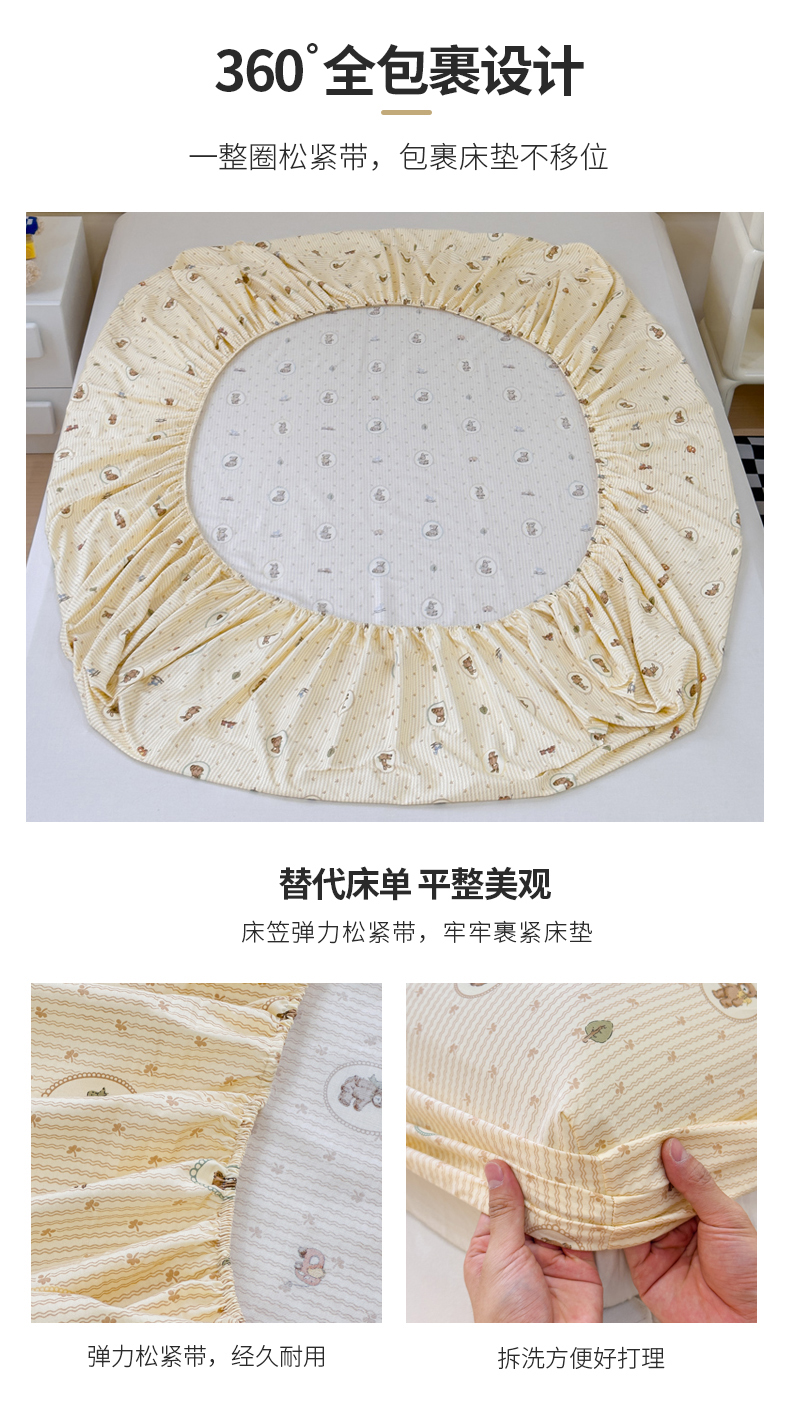 • 91家纺网 家纺一手货源 找家纺 金丝鸟家纺 2024新款全棉小清新印花单床笠系列 美美熊