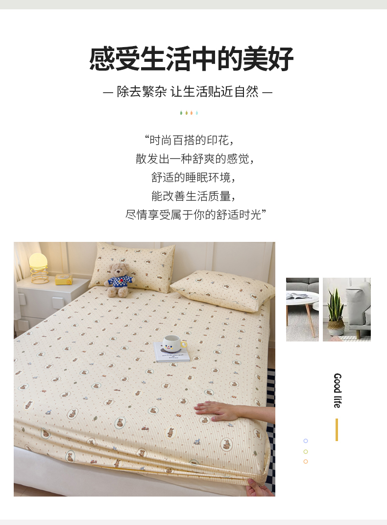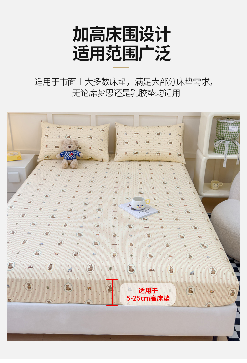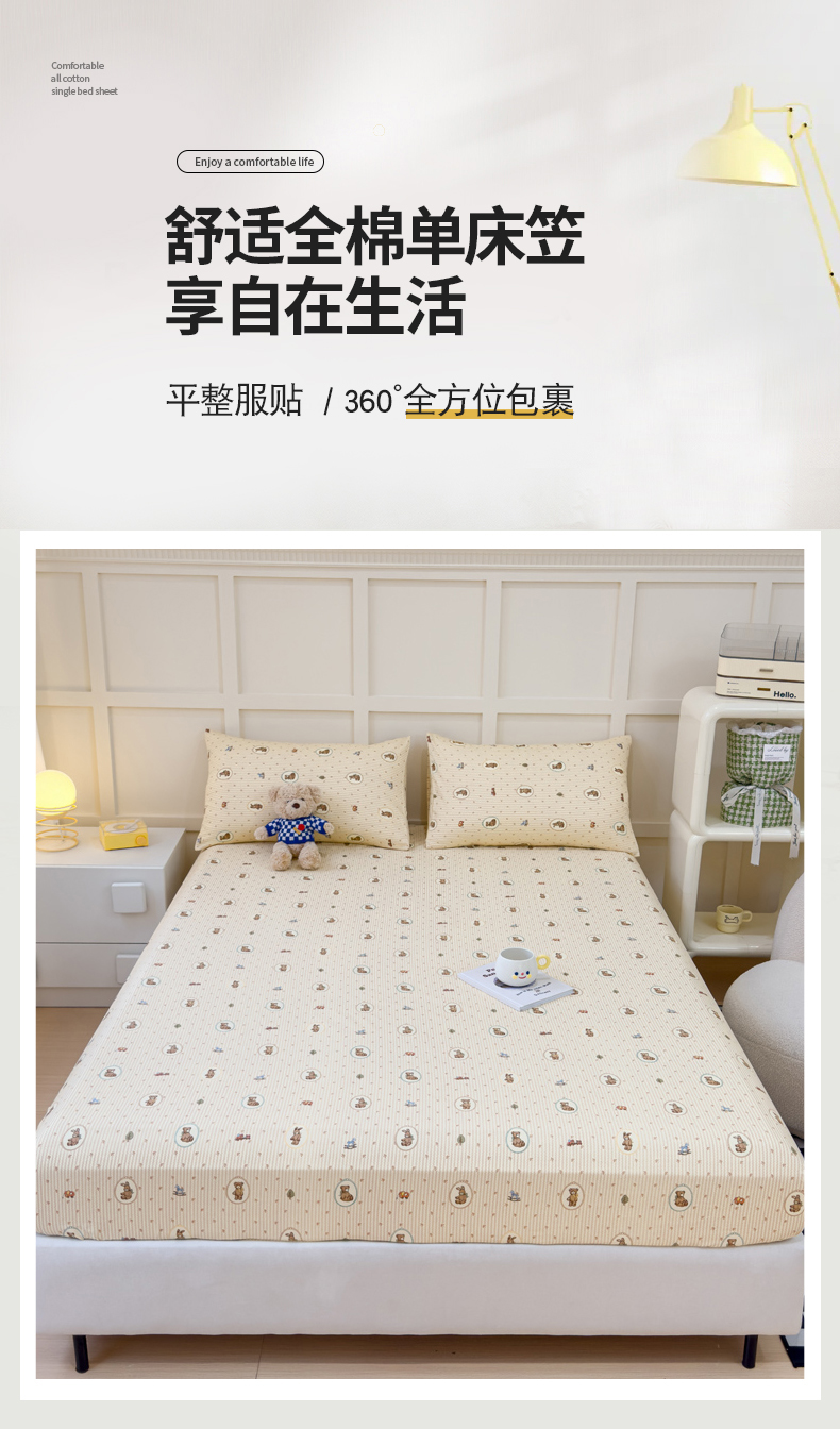 金丝鸟家纺 2024新款全棉小清新印花单床笠系列 美美熊