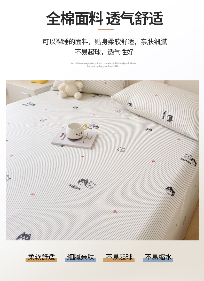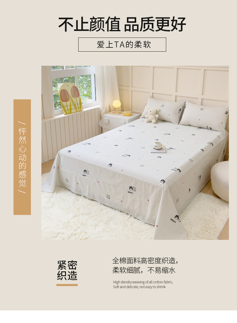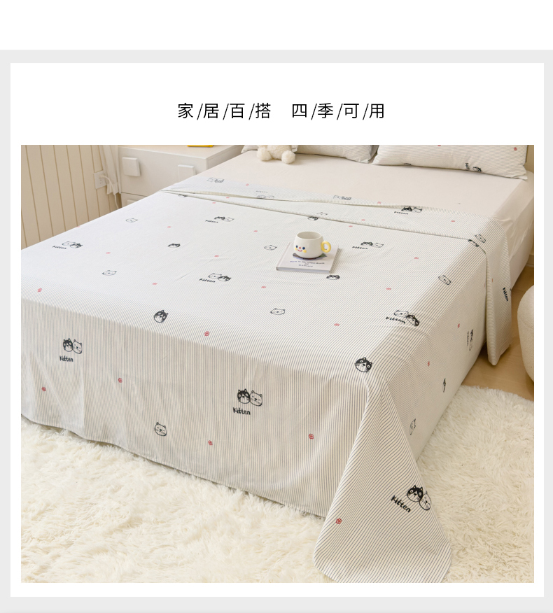 • 91家纺网 家纺一手货源 找家纺 金丝鸟家纺 2024新款全棉小清新印花单床单系列 小萌猫