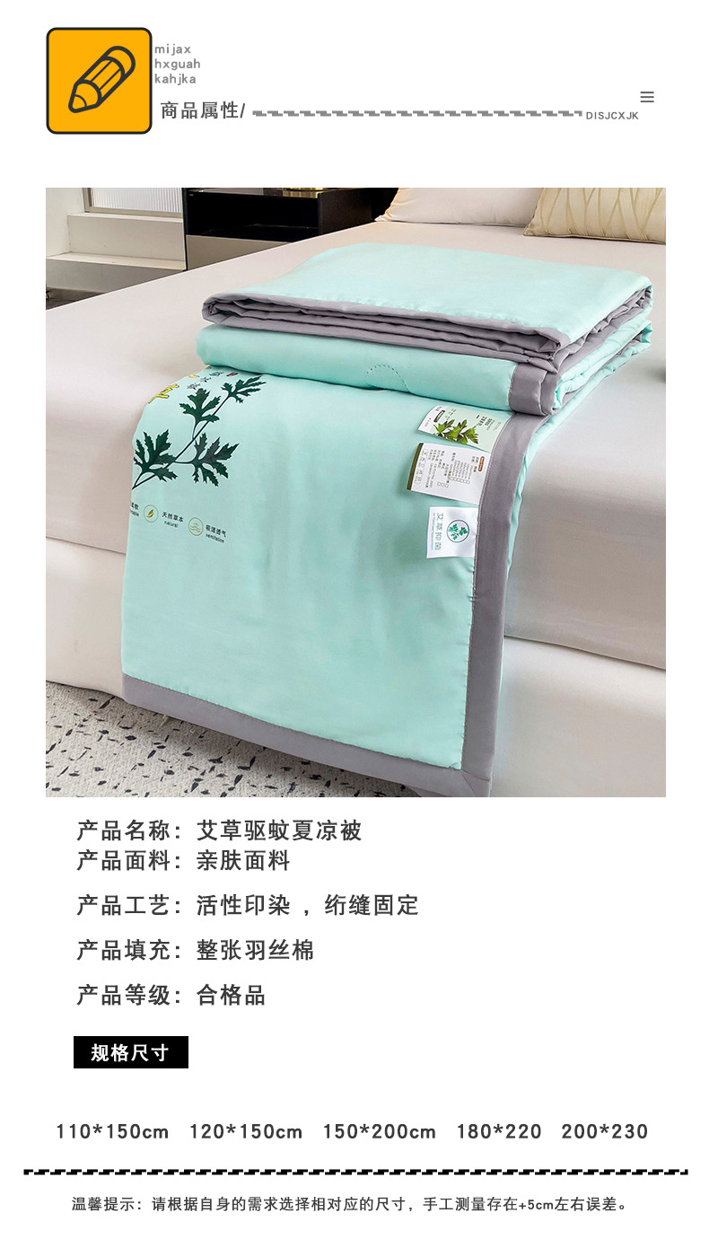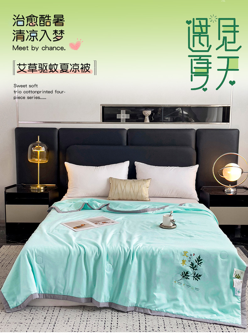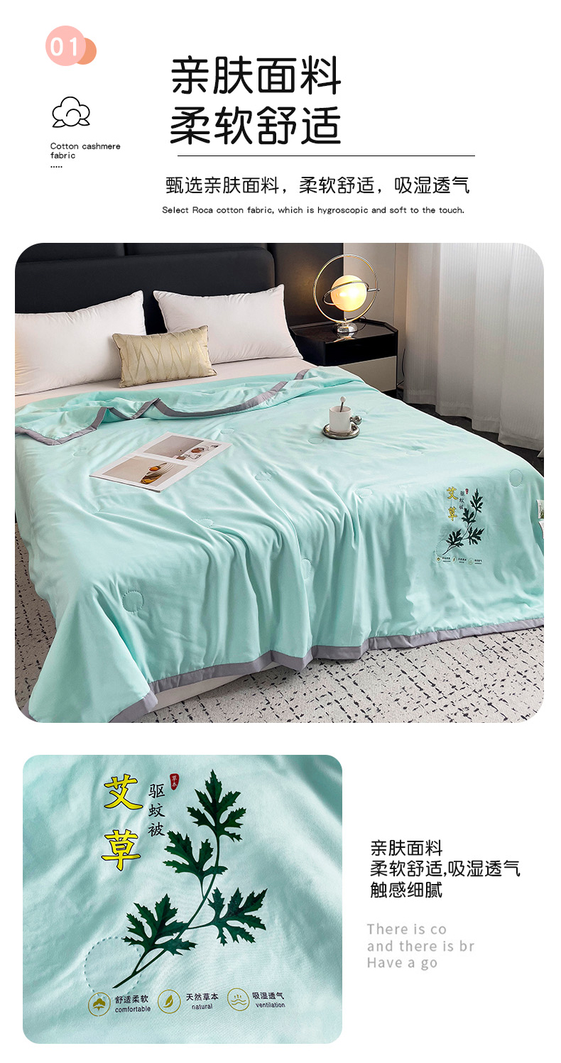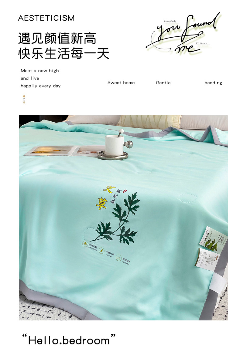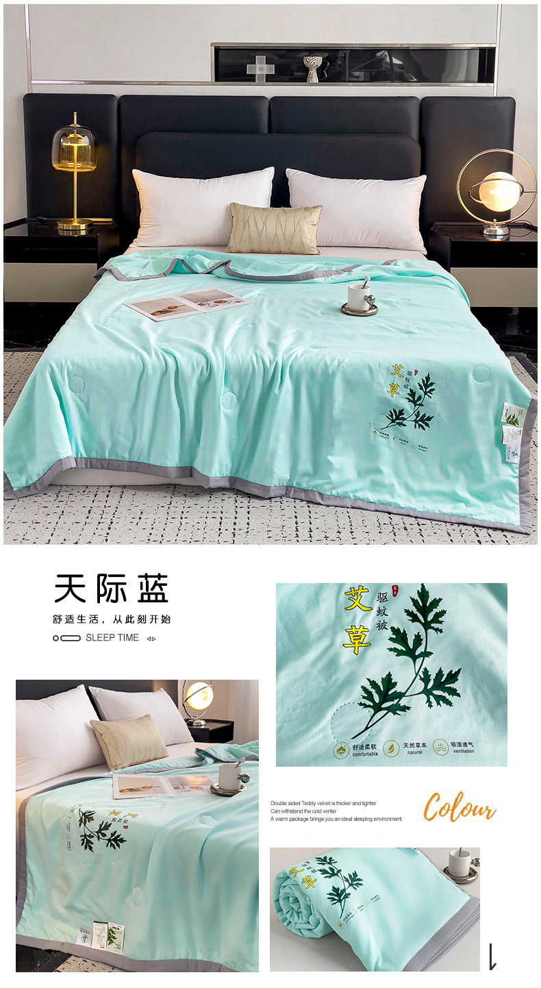 (总)鹿小帅纺织品 2024新款艾草驱蚊夏凉被,暖心玉,天际蓝,高级灰