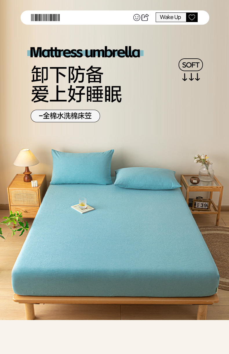 • 91家纺网 家纺一手货源 找家纺 卡伦家纺 2025全棉色织水洗棉单层床笠席梦思保护套 海兰青年