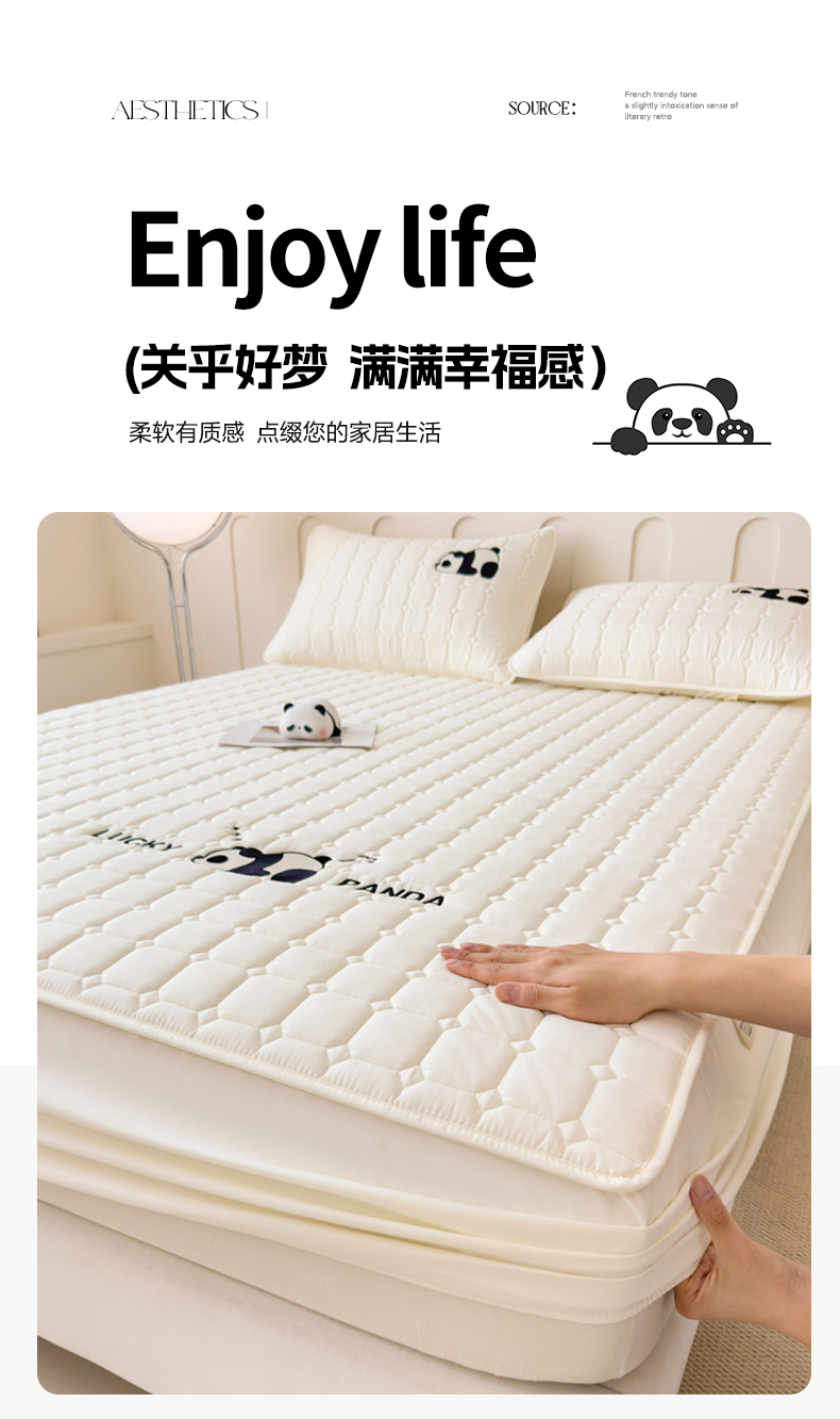 • 91家纺网 家纺一手货源 找家纺 2025新款A类大豆夹棉刺绣床笠系列-趴趴熊猫 趴趴熊猫-木槿紫