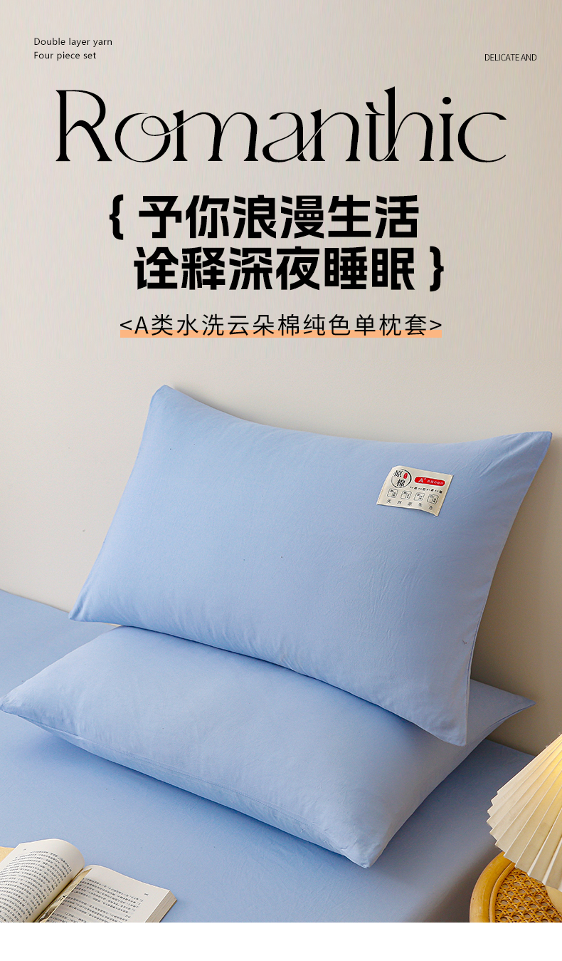 商品名称:2024新款A类云朵棉纯色枕套(口袋枕) 兰灰
