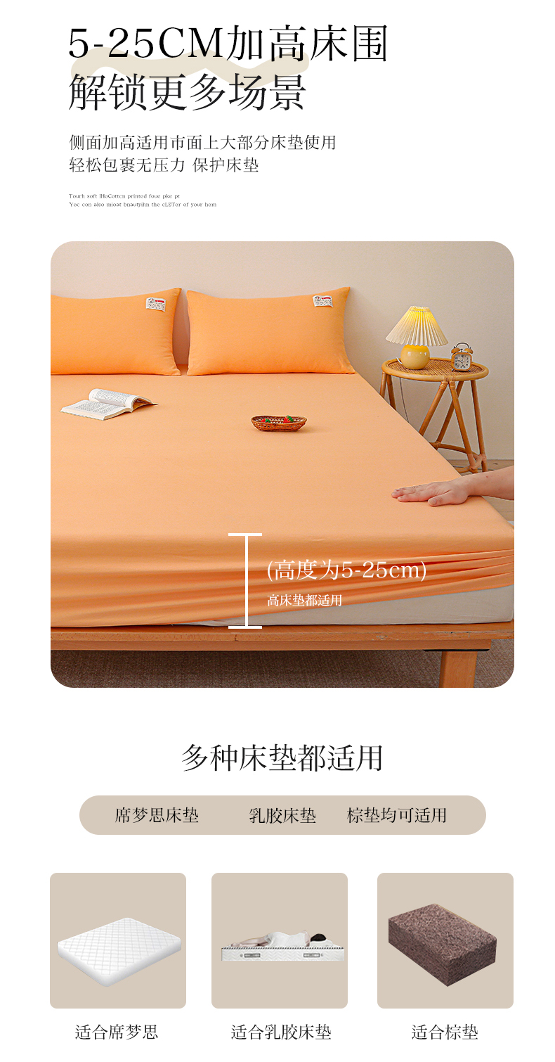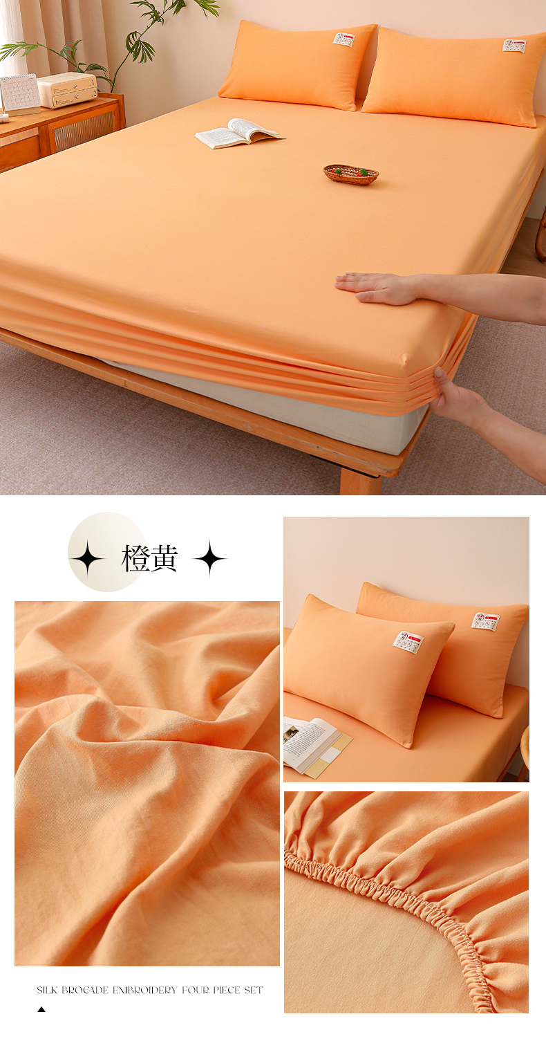 商品名称:2024新款A类云朵棉纯色床笠 橙黄