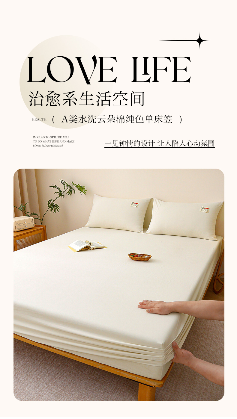 2024新款A类云朵棉纯色床笠 浅米黄