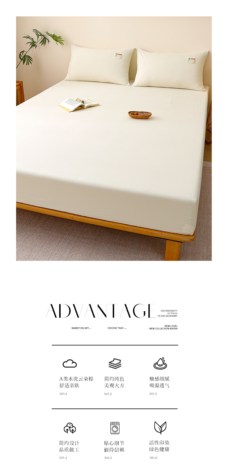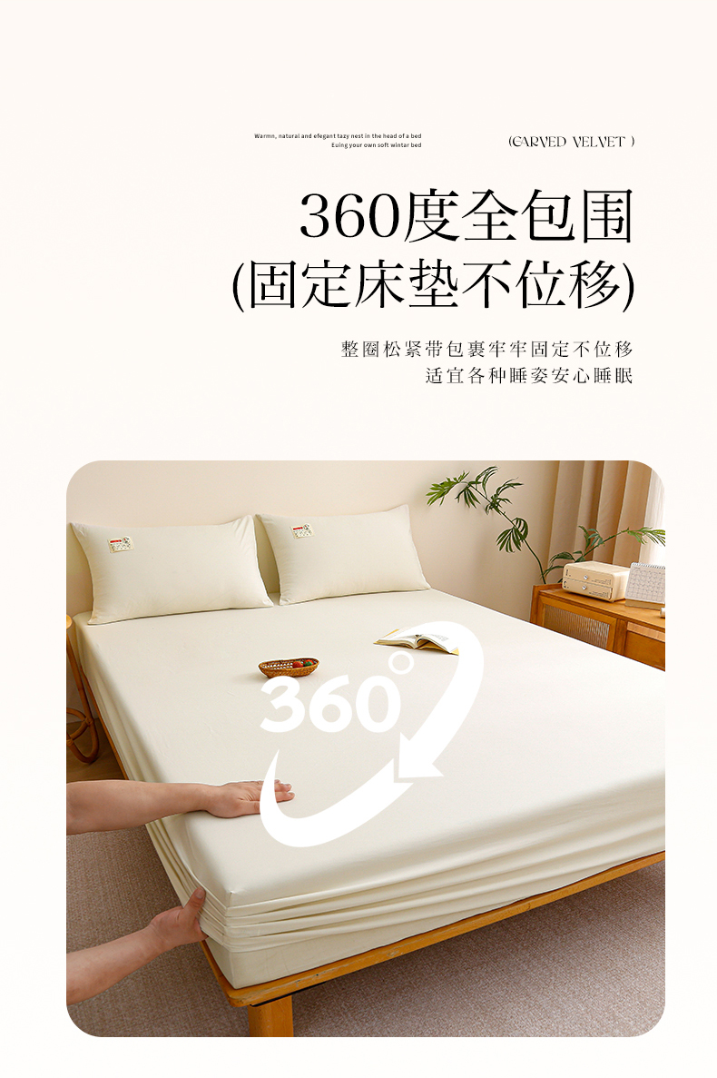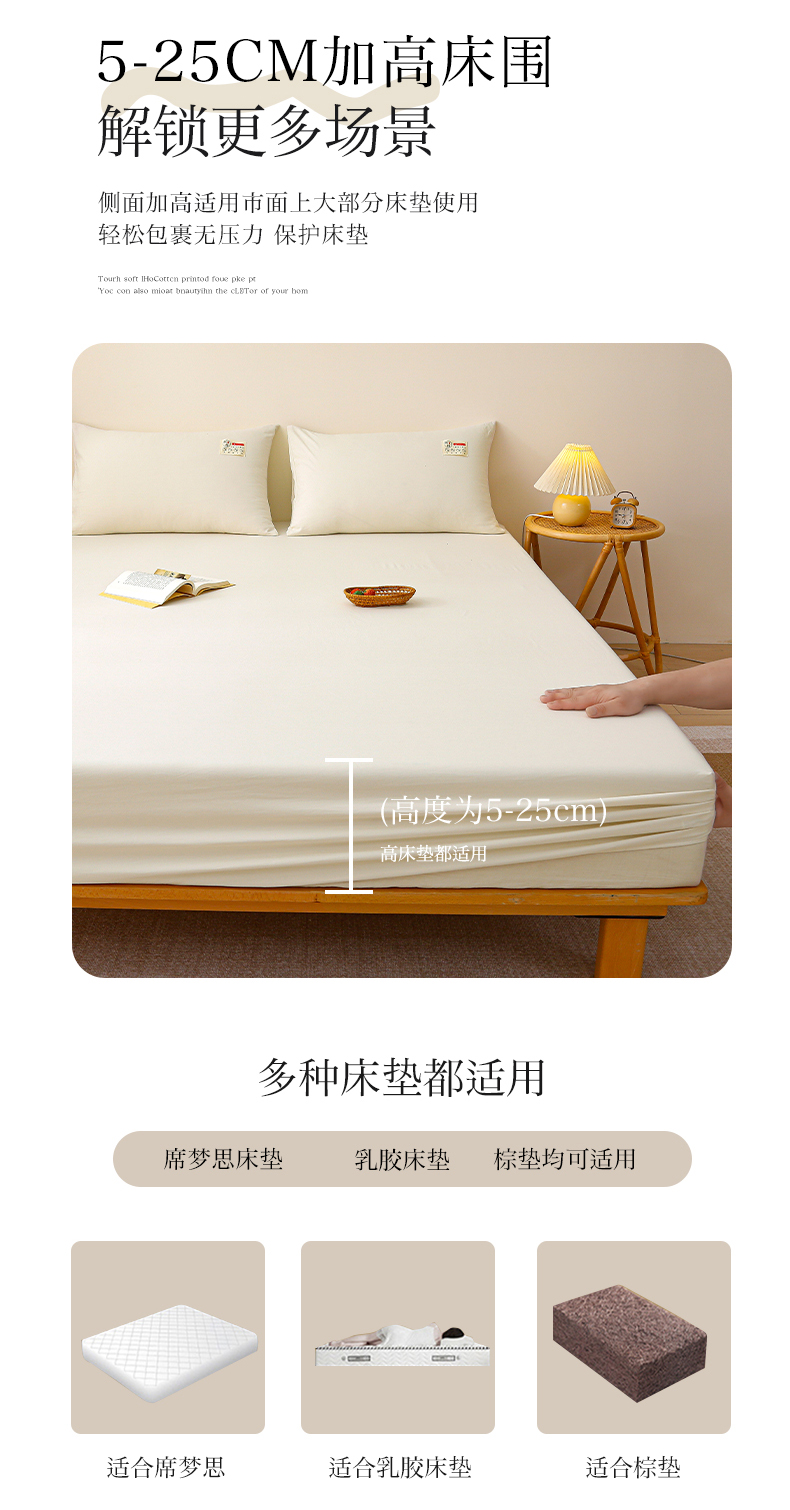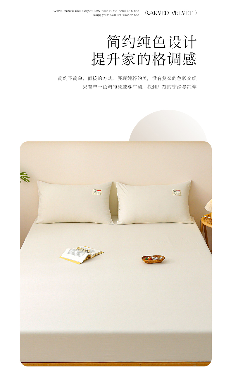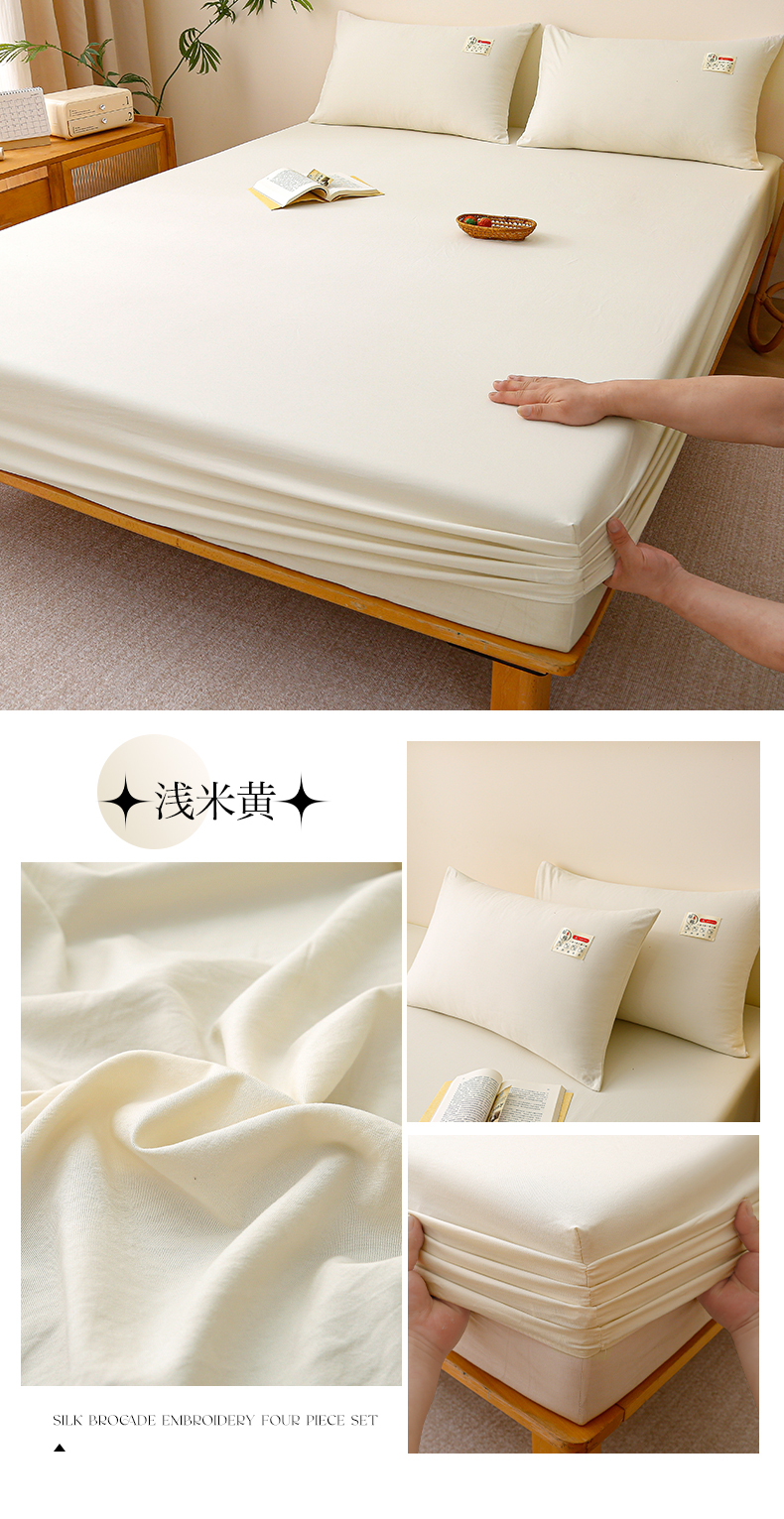 商品名称:2024新款A类云朵棉纯色床笠 浅米黄