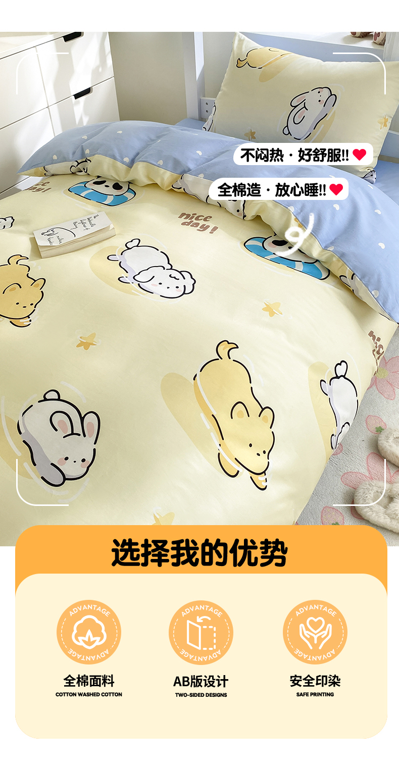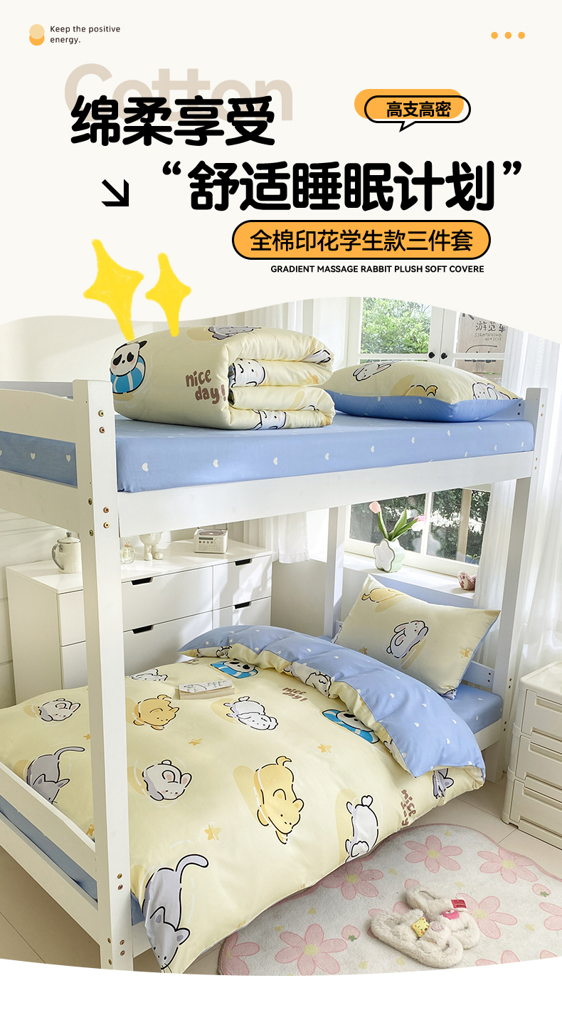 (总)本制 2025新款12868全棉纯棉印花卡通学生三件套宿舍上下铺三件套,假日小狗+爱心蓝,莱米+雏菊黄,萌熊乐园+爱心蓝,萌熊乐园-蓝+雏菊黄,棉花糖+领结粉,泡芙+爱心蓝,汪星漫步+领结粉,汪星漫步-蓝+领结粉