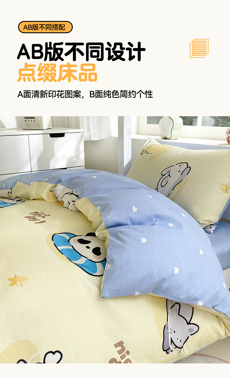 商品名称:本制 2024新款学生季全棉印花三件套 浮生-米