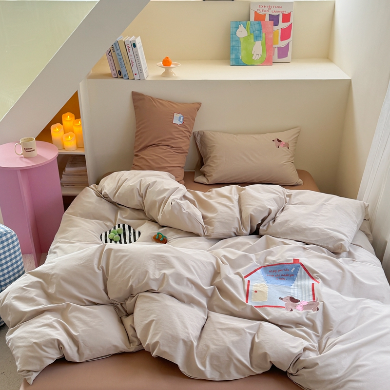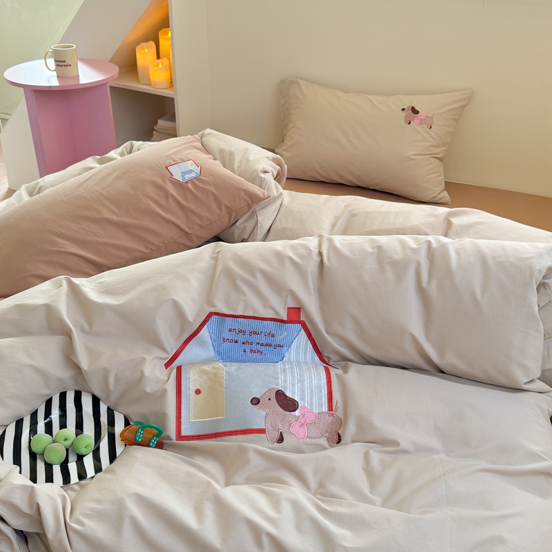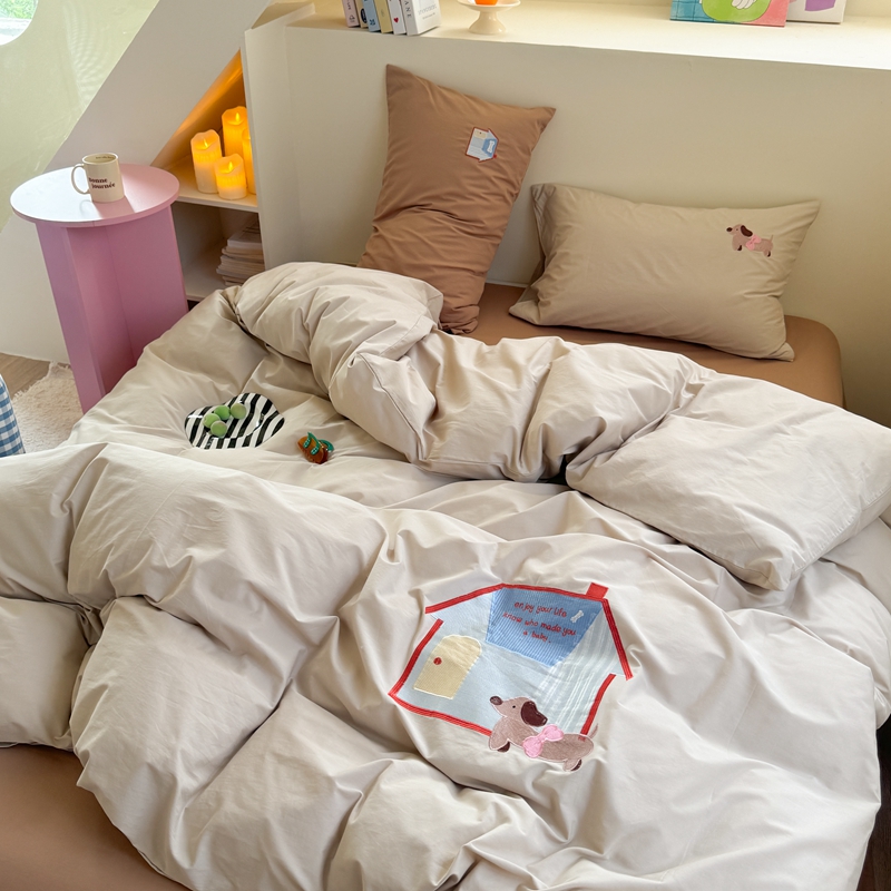 柚子YOUTH 2024新款全棉水洗棉撞色刺绣四件套 快乐小屋