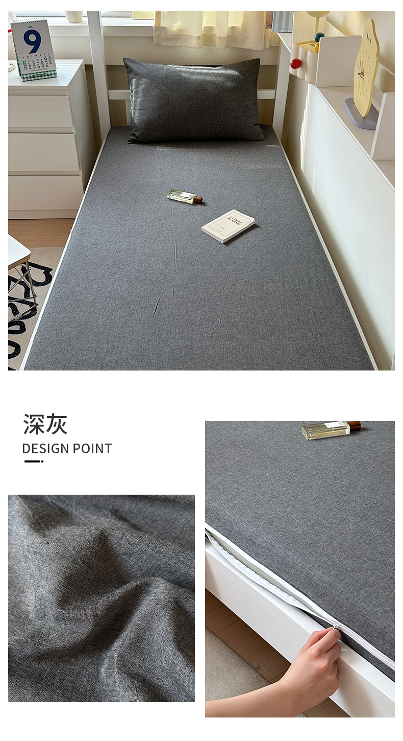 • 91家纺网 家纺一手货源 找家纺 北欧良品 2024新款学生季A类全棉水洗棉单品床套床垫套 深灰