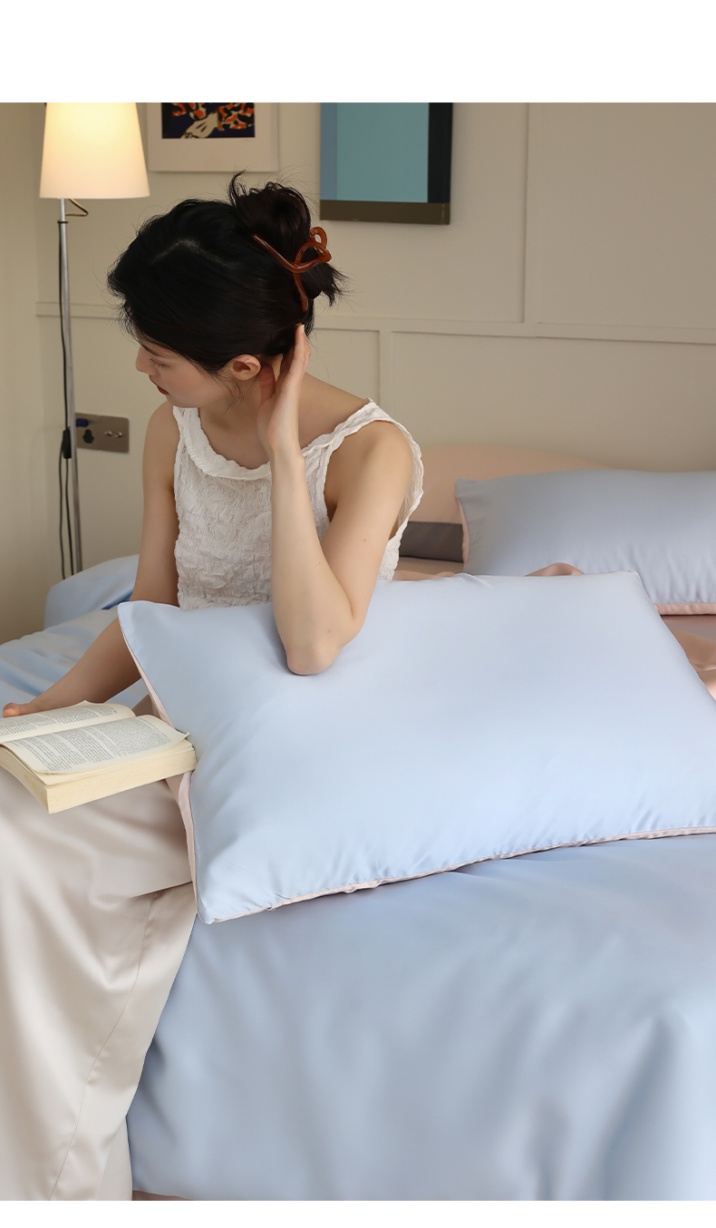 商品名称:轩和 2025新款A类LF60S兰精天丝单品枕套 夏日蓝+告白粉