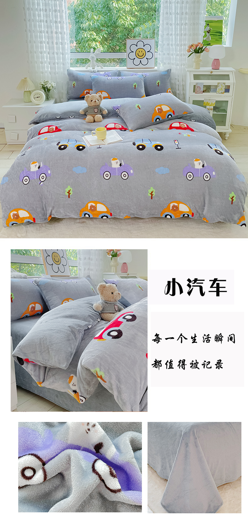 当前位置: 91家纺网 > 商品网购 > 床品套件 > 四件套 > 牛奶绒四件套 > 神州川 2024新款190小清新牛奶绒印花四件套卡通法莱绒保暖四件套跑量款 小汽车