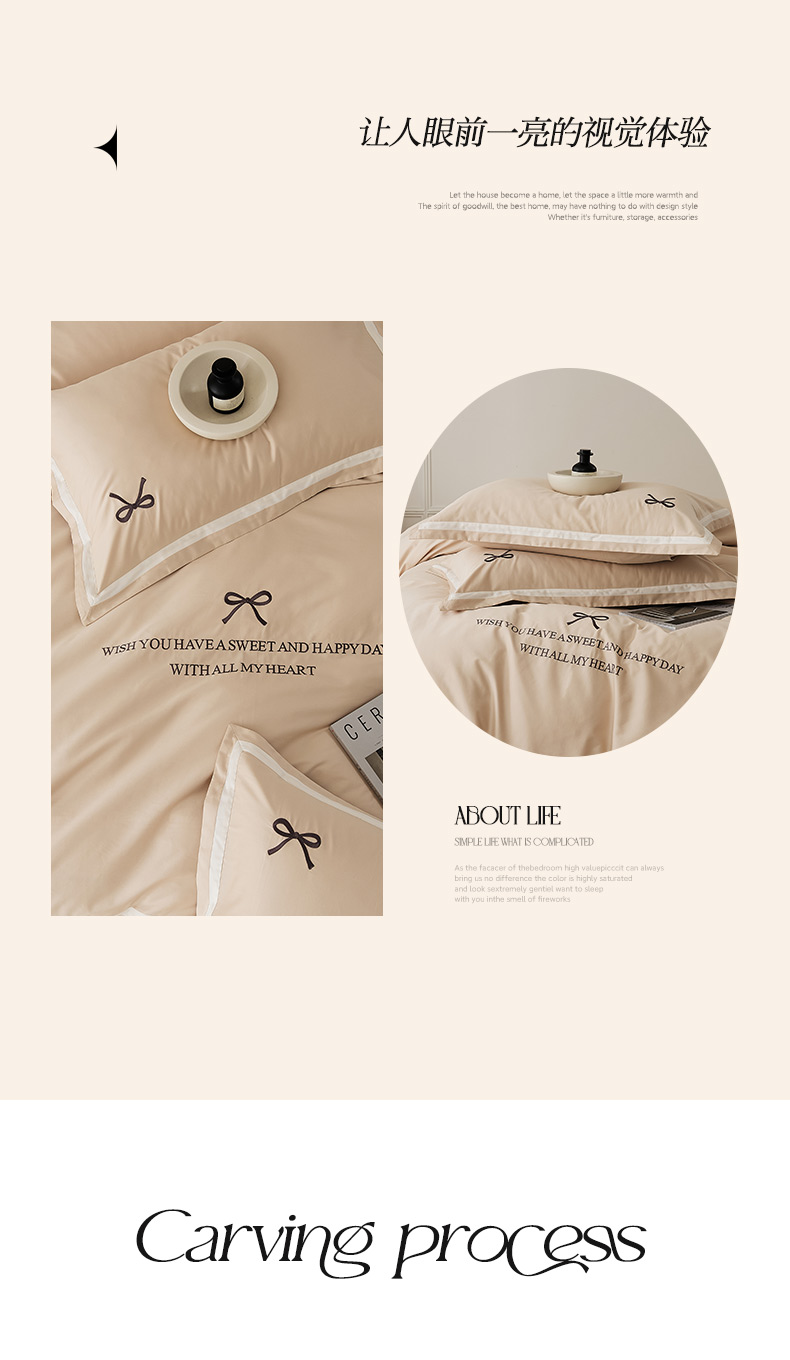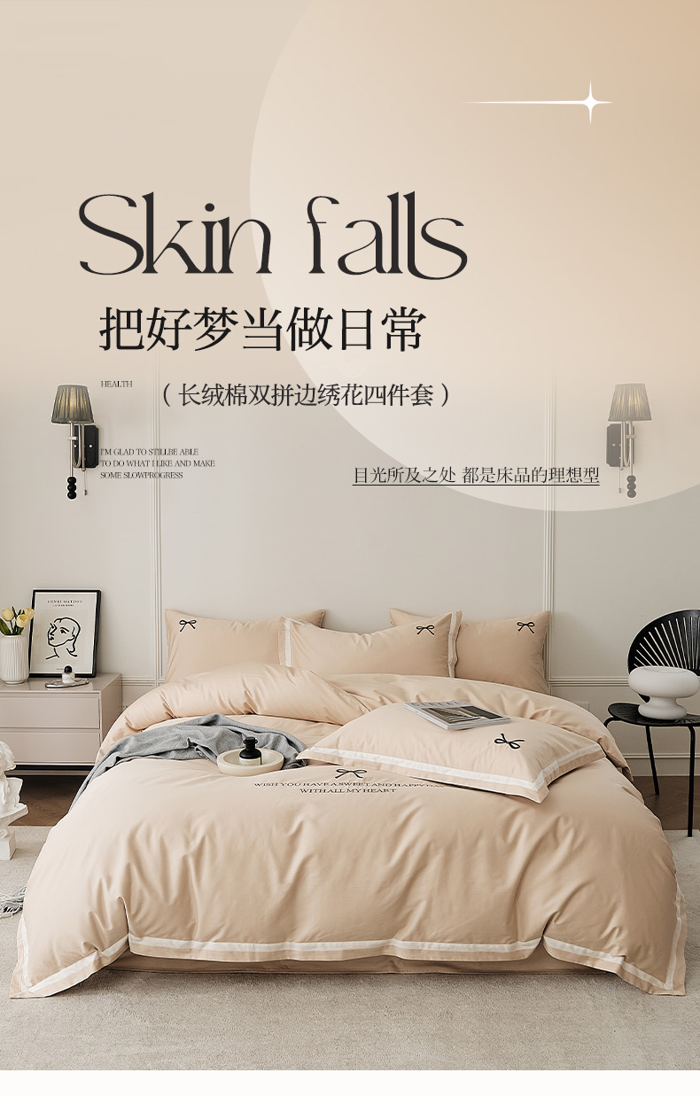 当前位置: 91家纺网 > 商品网购 > 床品套件 > 四件套 > 长绒棉四件套 > EH家居 2024新款长绒棉绣花四件套-伊人系列 伊人-奶杏