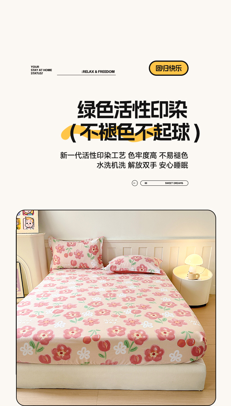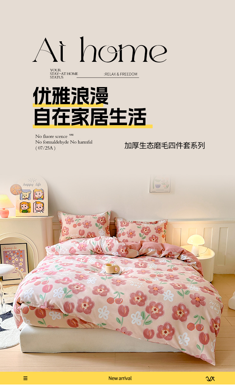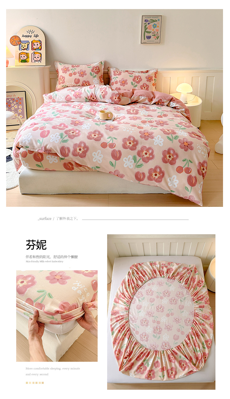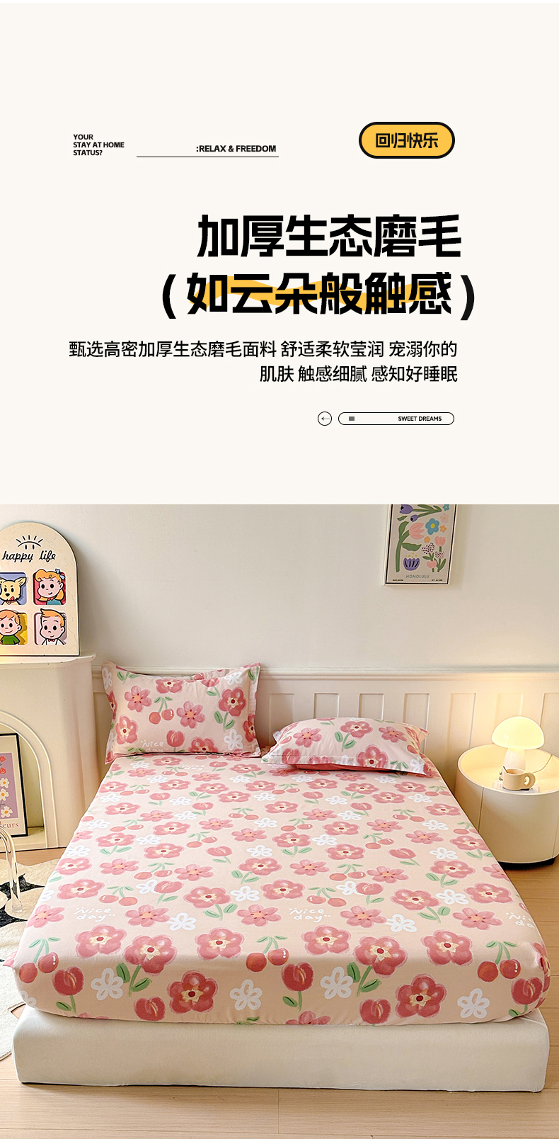 2025新款加厚生态磨毛床笠四件套 芬妮