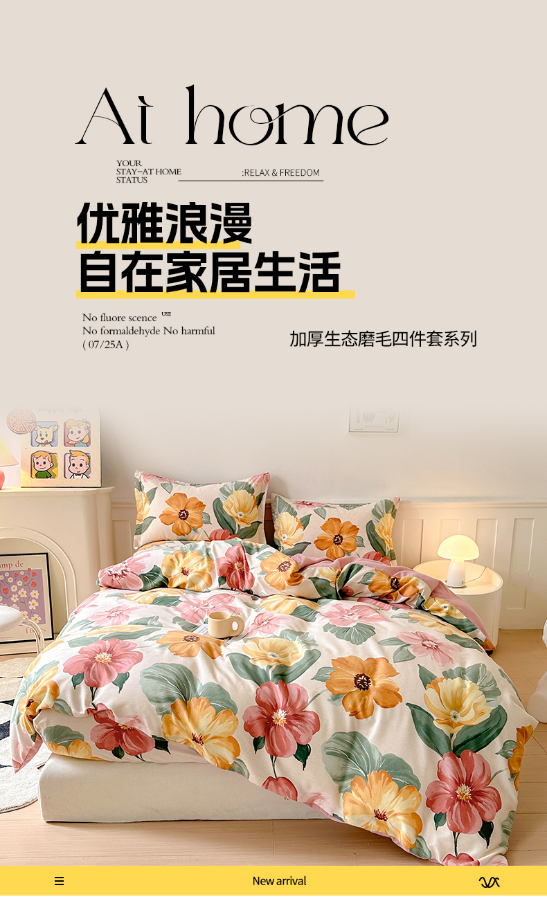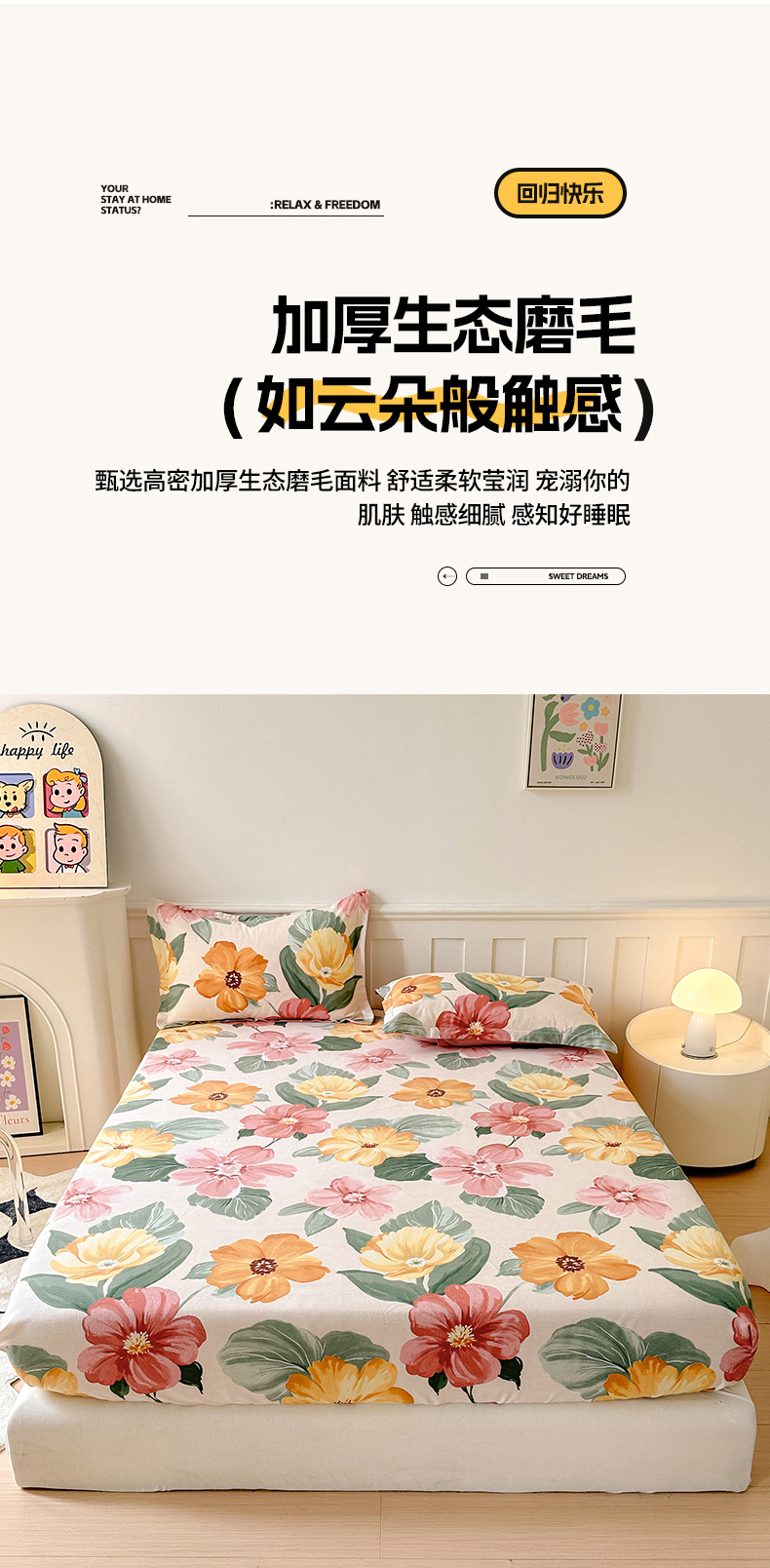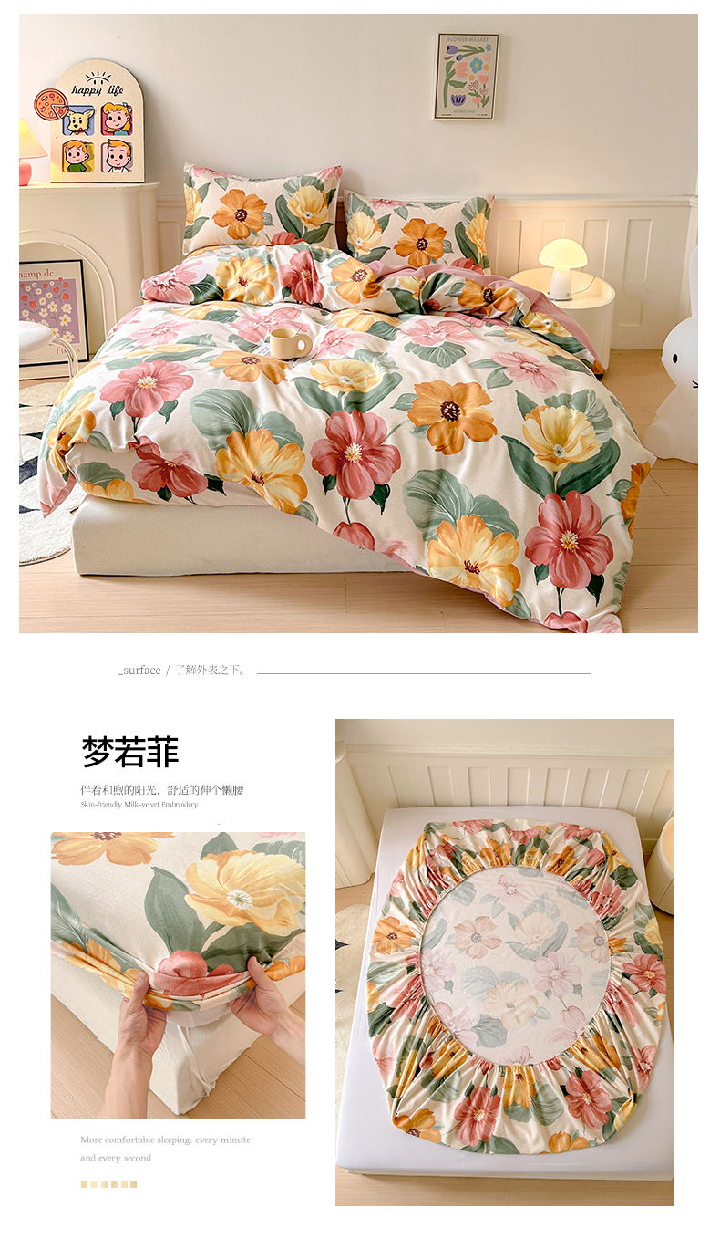 2025新款加厚生态磨毛床笠四件套 梦若菲