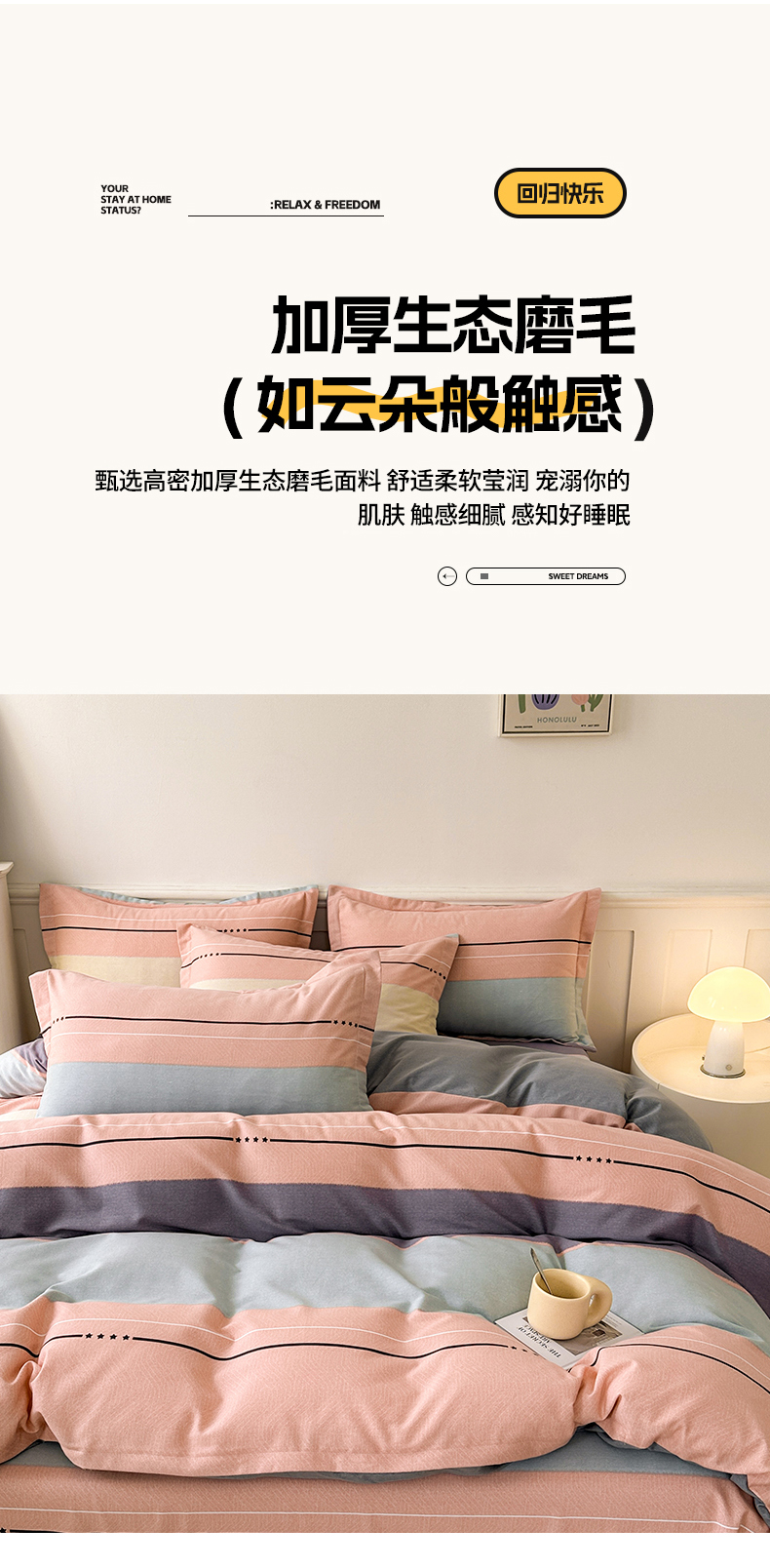 当前位置: 91家纺网 > 商品网购 > 床品套件 > 四件套 > 全棉普通四件套 > 2025新款加厚生态磨毛床单四件套 杰森