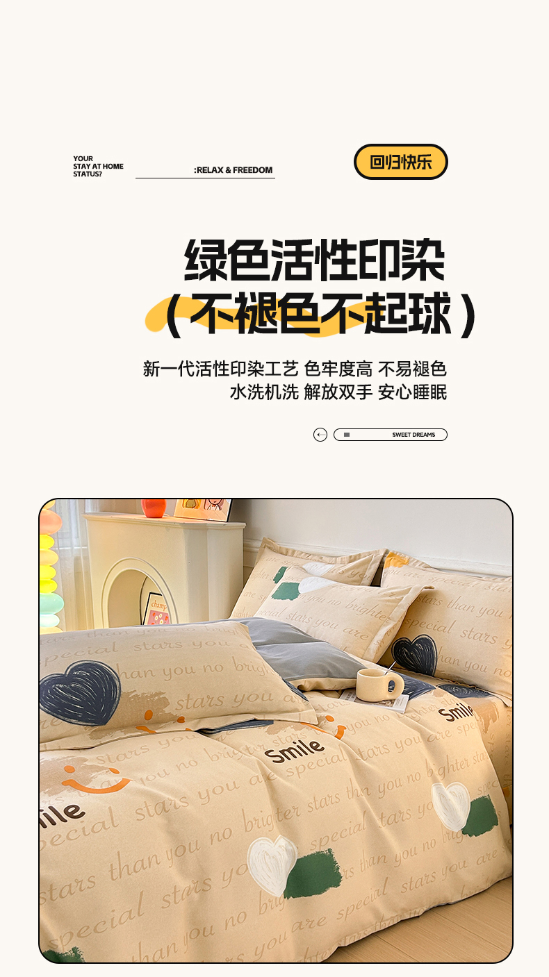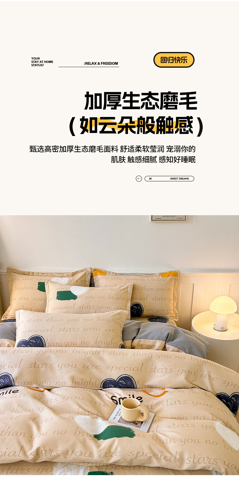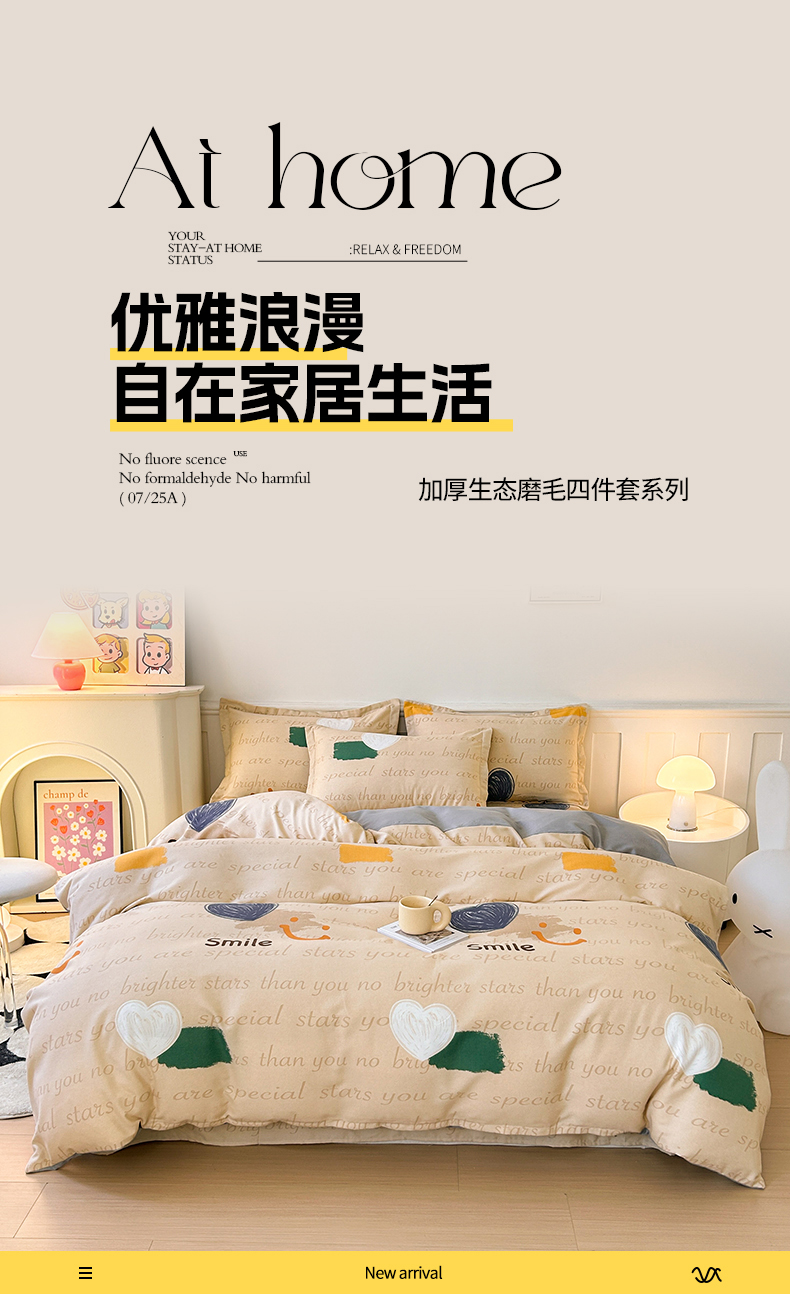当前位置: 91家纺网 > 商品网购 > 床品套件 > 四件套 > 全棉普通四件套 > 2025新款加厚生态磨毛床单四件套 微笑生活