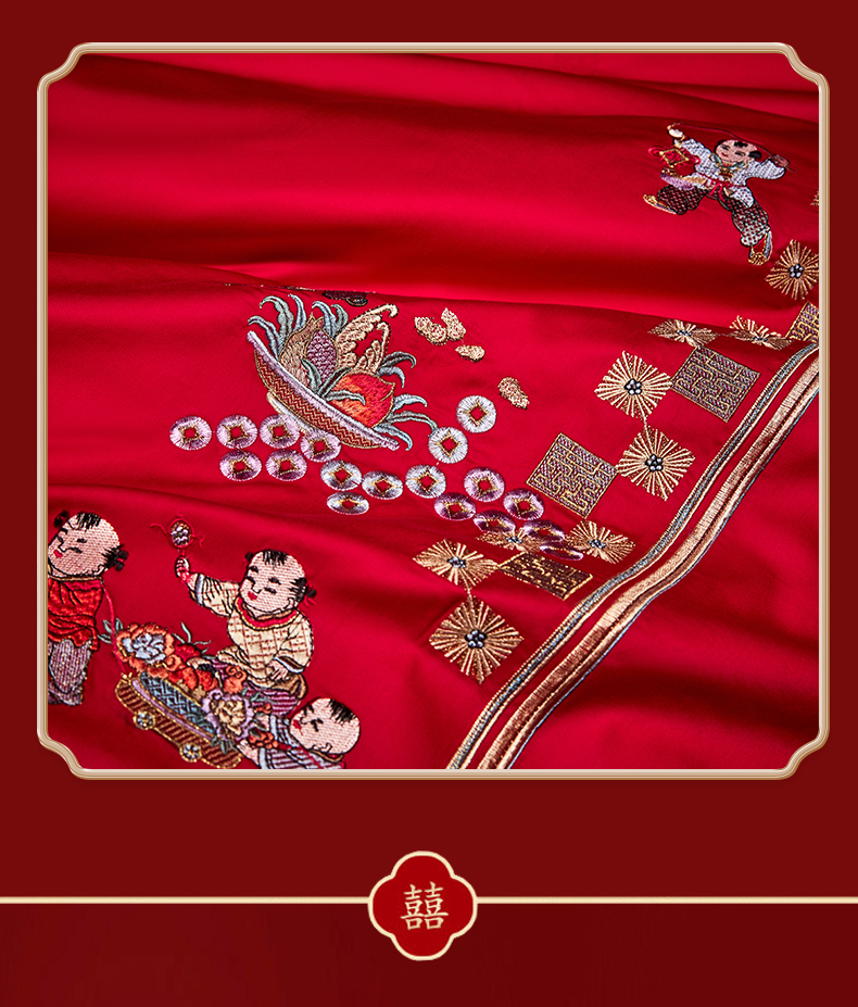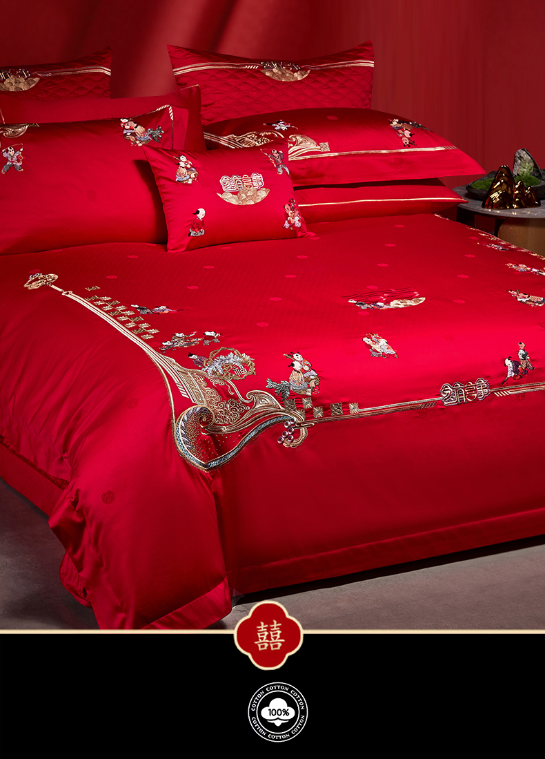 当前位置: 91家纺网 > 商品网购 > 床品套件 > 四件套 > 长绒棉四件套 > 2025新款长绒棉长绒棉贡缎提花款新中式古典韵味精美刺绣婚庆四件套多件套 永结同心