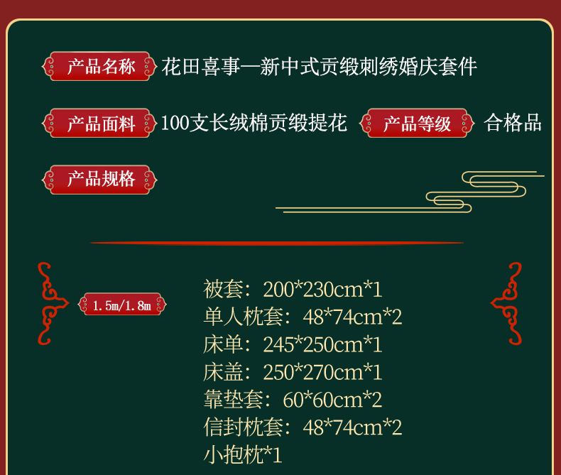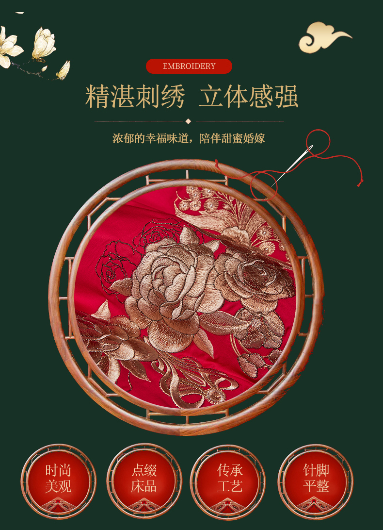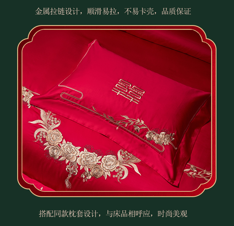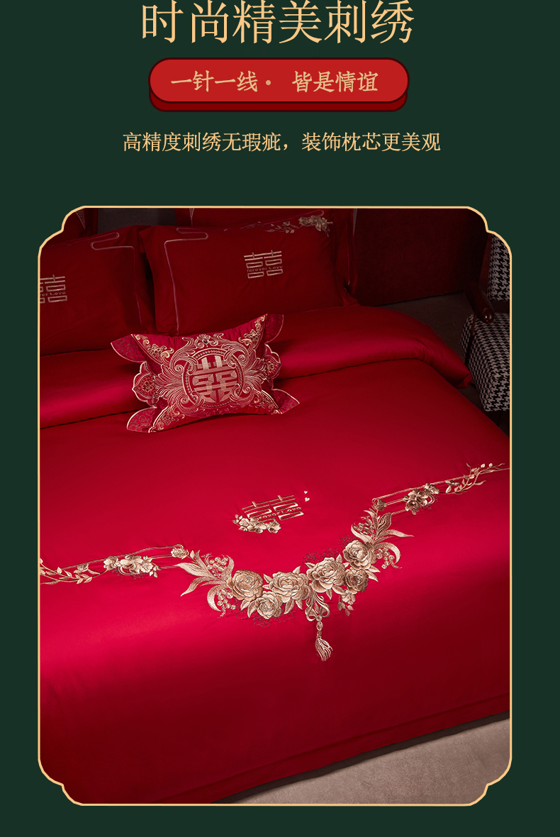当前位置: 91家纺网 > 商品网购 > 床品套件 > 四件套 > 全棉普通四件套 > 2025新款40s全棉长绒棉新中式刺绣婚庆四件套多件套 花田喜事