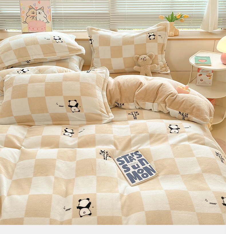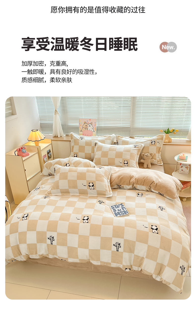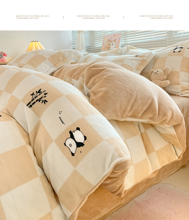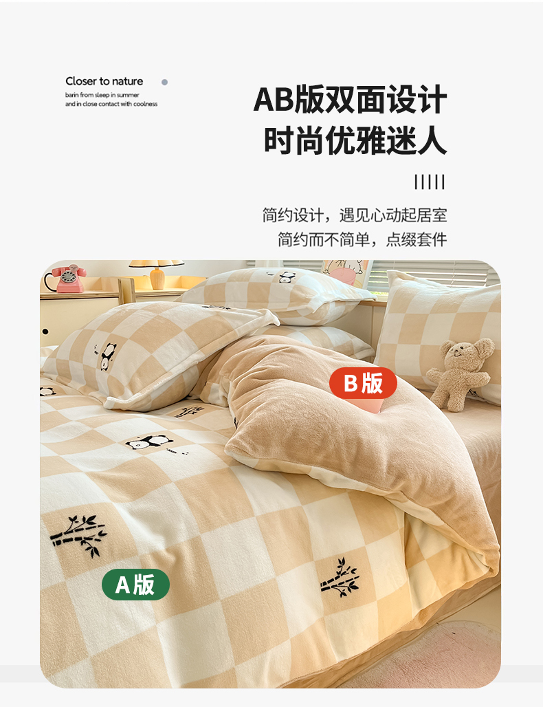 2024新款A类AB版加厚保暖双面牛奶绒印花四件套--小清新系列 竹叶熊猫