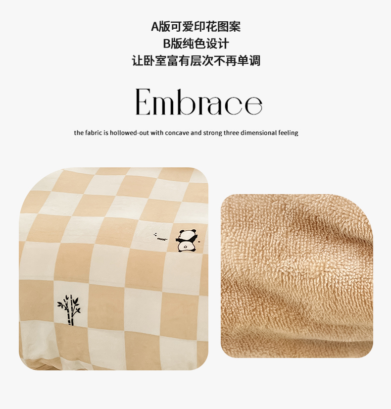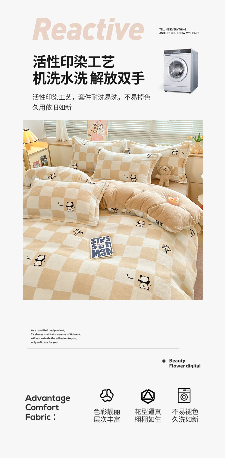 商品名称:2024新款A类AB版加厚保暖双面牛奶绒印花四件套--小清新系列 竹叶熊猫