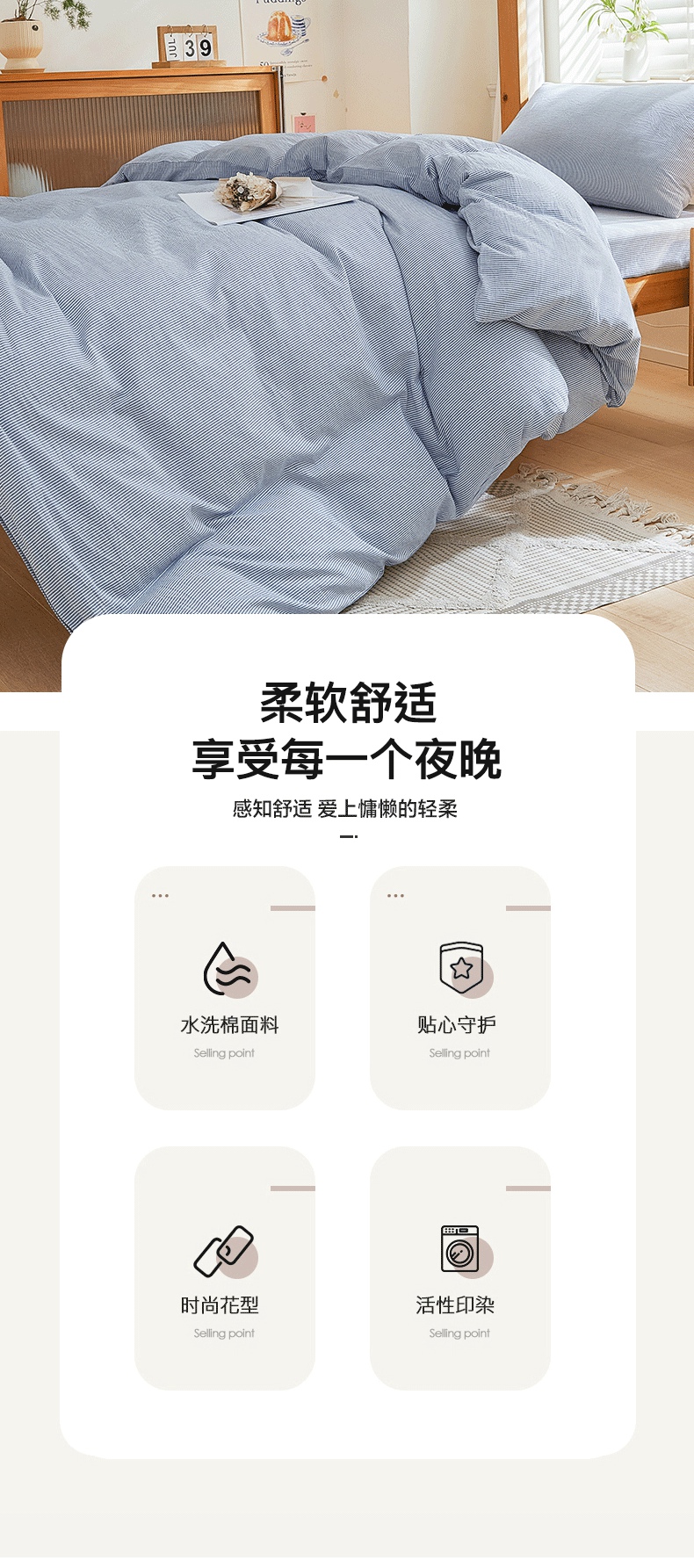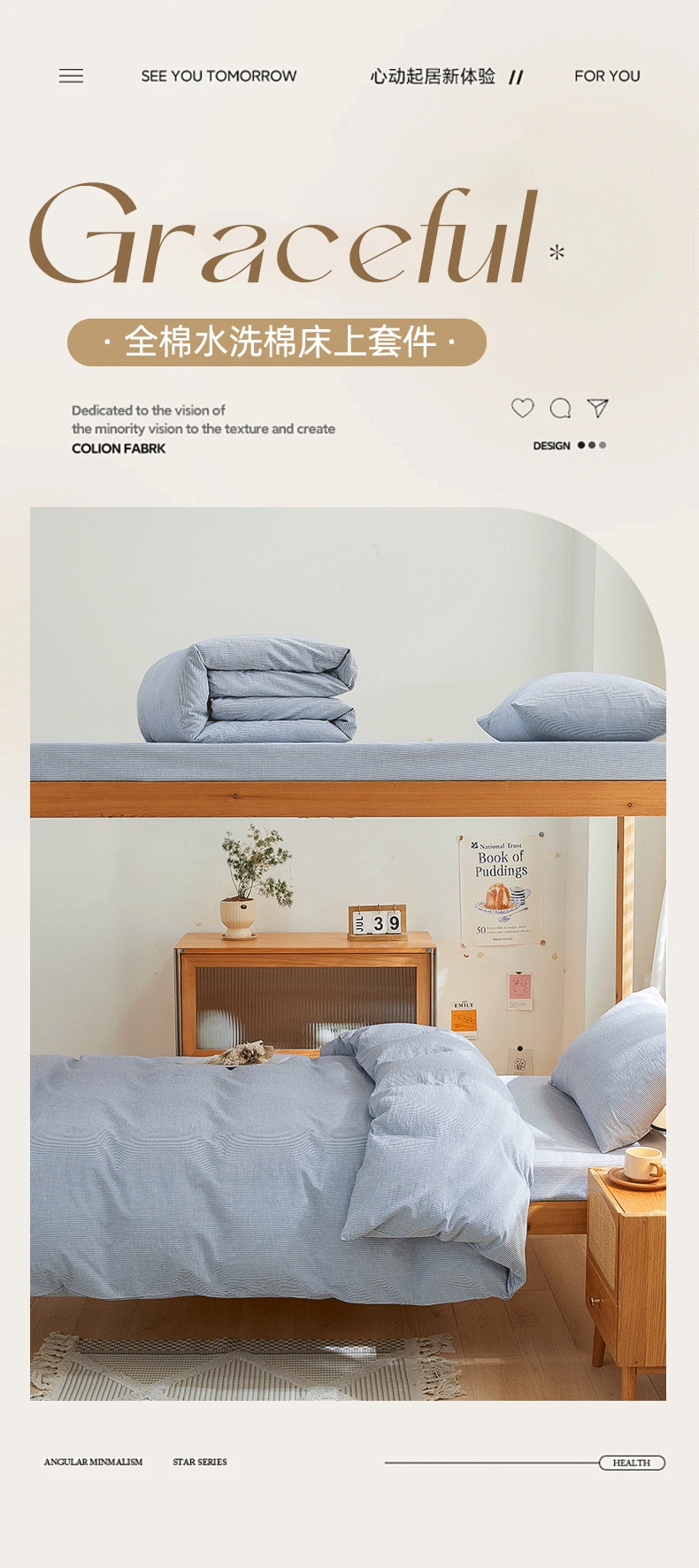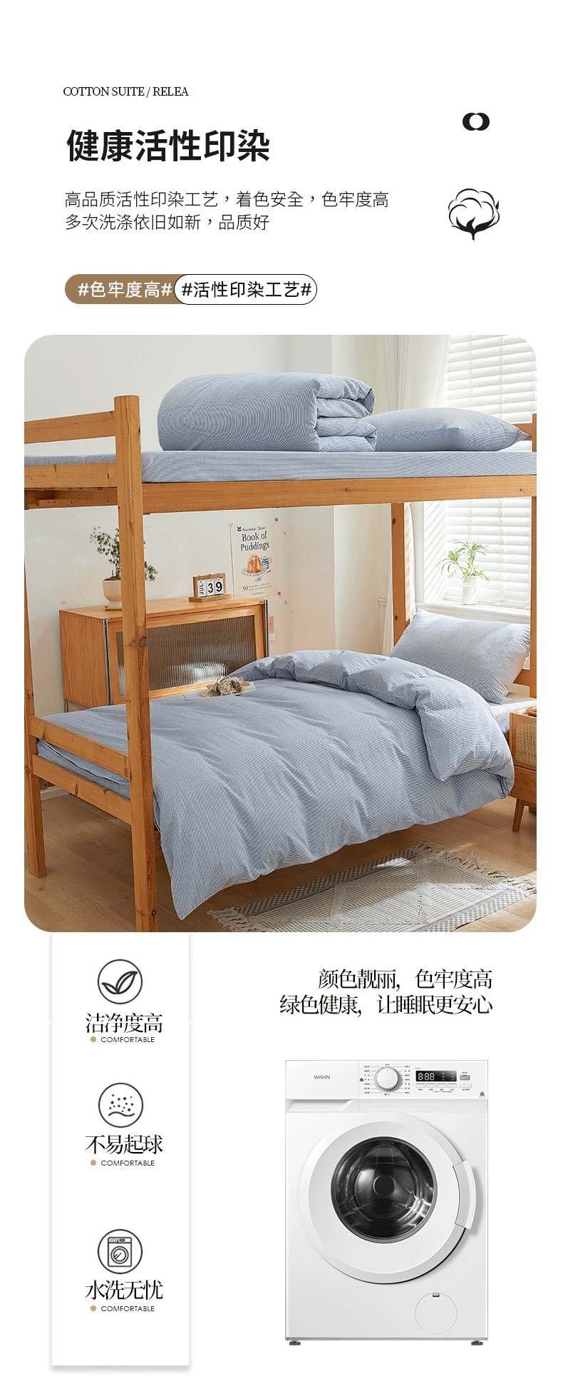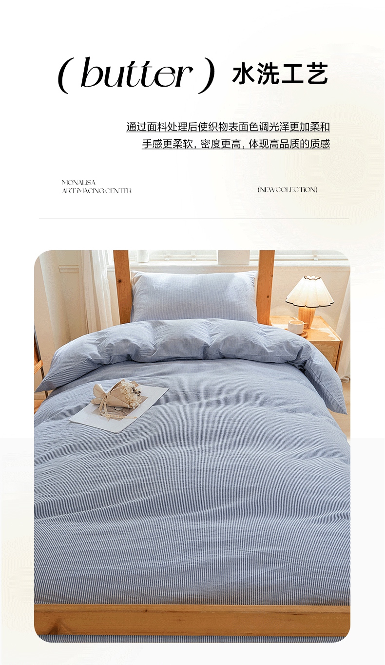韩约家纺 2024新款全棉水洗棉三四件套 米条-蓝