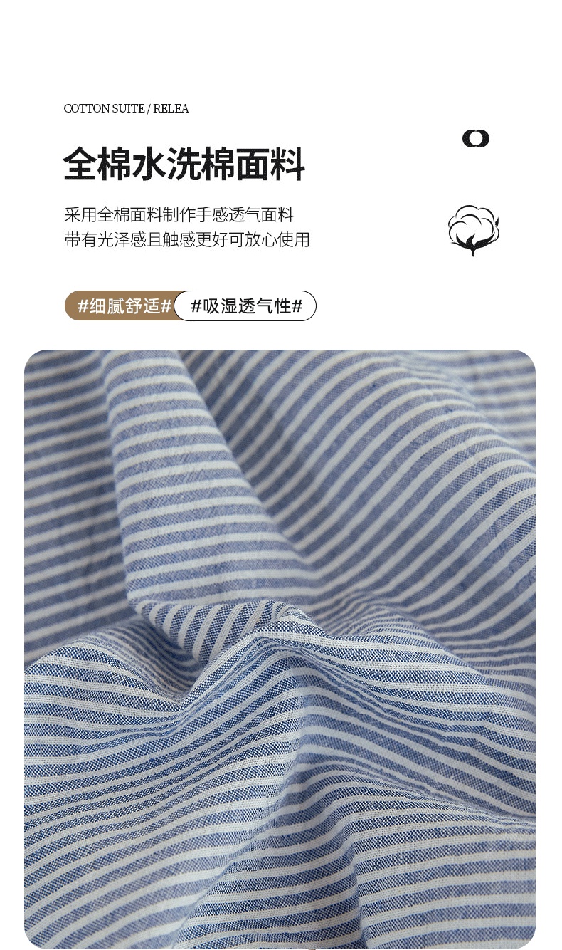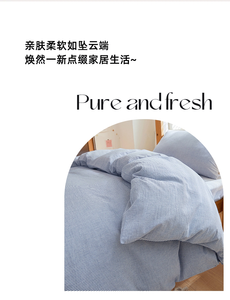商品名称:韩约家纺 2024新款全棉水洗棉三四件套 米条-蓝