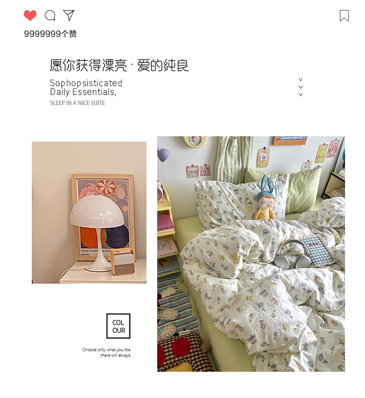 当前位置: 91家纺网 > 商品网购 > 床品套件 > 四件套 > 水洗棉四件套 > 原素 2024学生季专属A类水洗棉印花四件套 田园姑娘