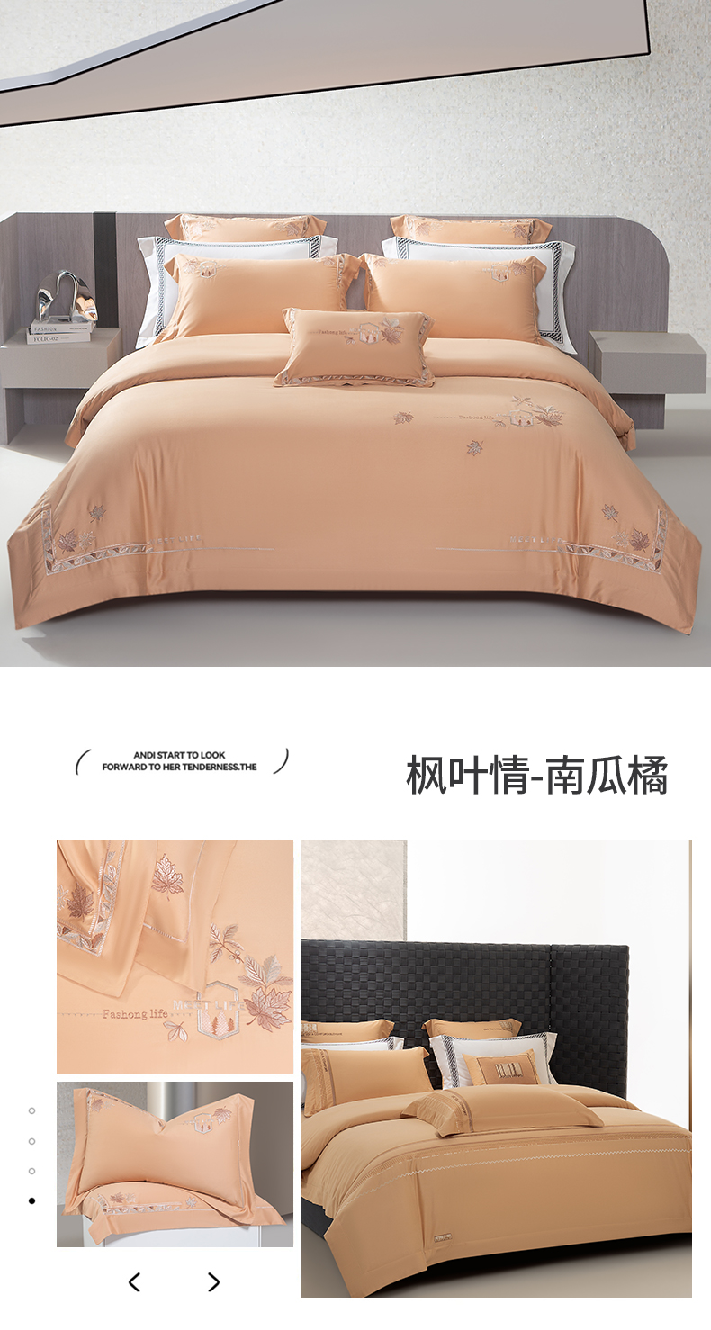 商品名称:2025新款磨毛绣花四件套-枫叶情 枫叶情-南瓜橘