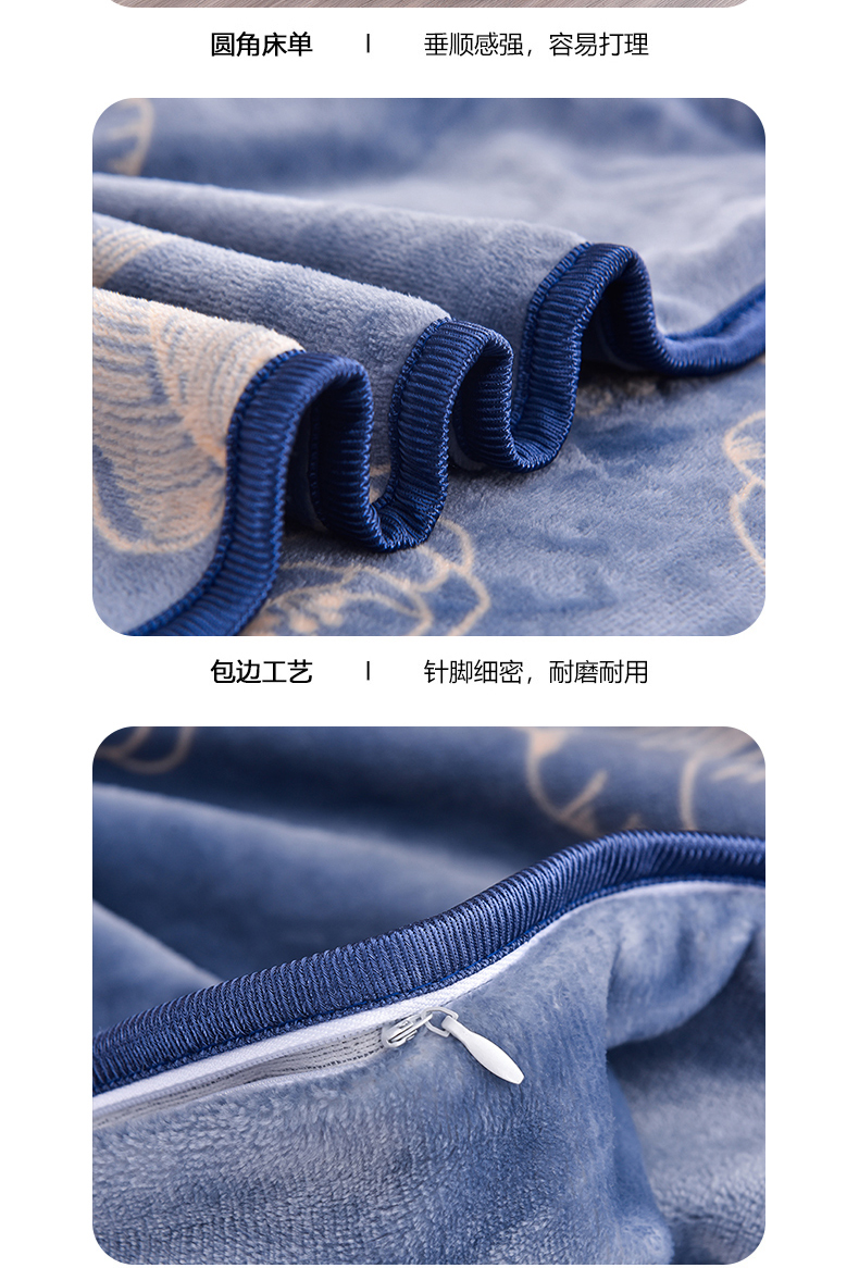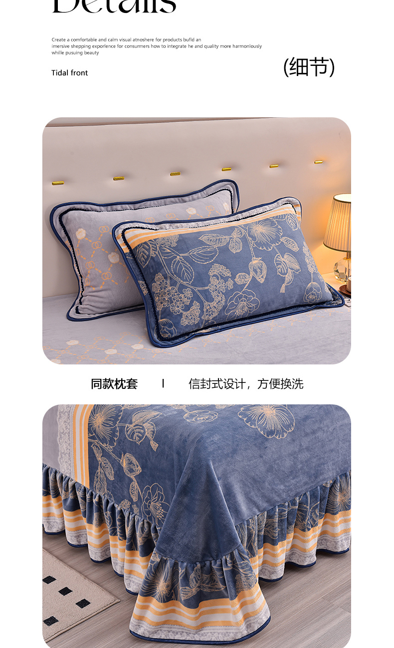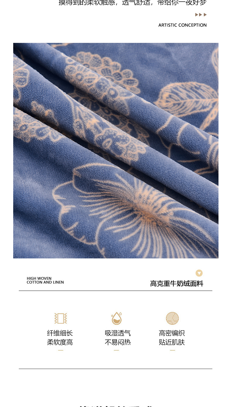 商品名称:亿品2025直播爆款9.5斤牛奶绒四件套加厚保暖床裙四件套 爱在花期《蓝》
