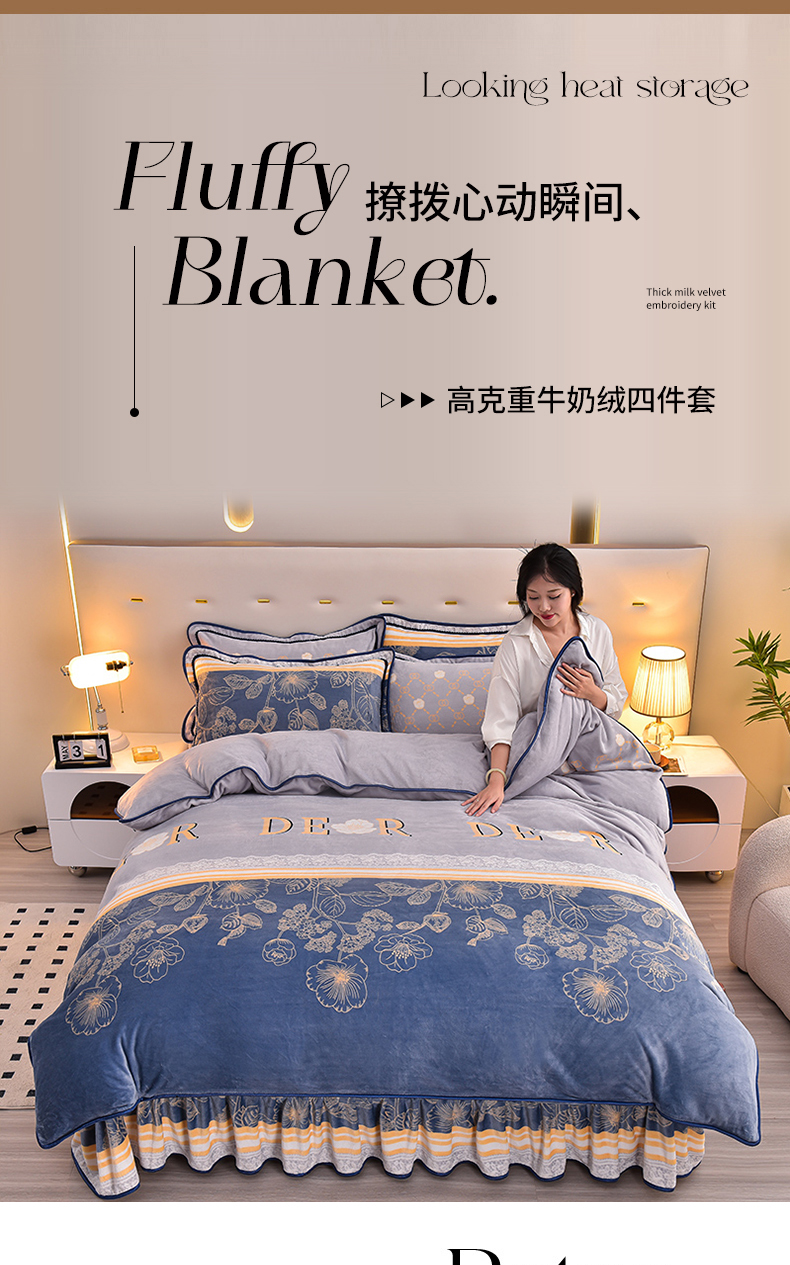 亿品2025直播爆款9.5斤牛奶绒四件套加厚保暖床裙四件套 情怀,情怀