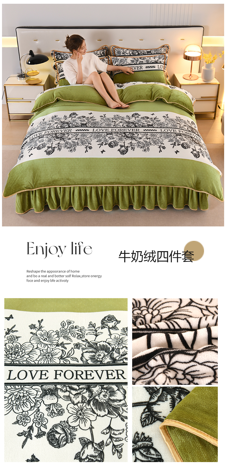 爱洛家纺 2024新款高克重牛奶绒印花四件套 盼夏
