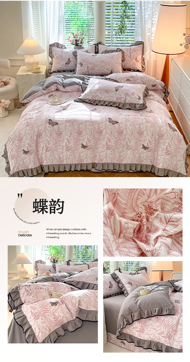 韩约家纺 2024秋冬加厚1针织棉时尚花边款四件套 蝶韵