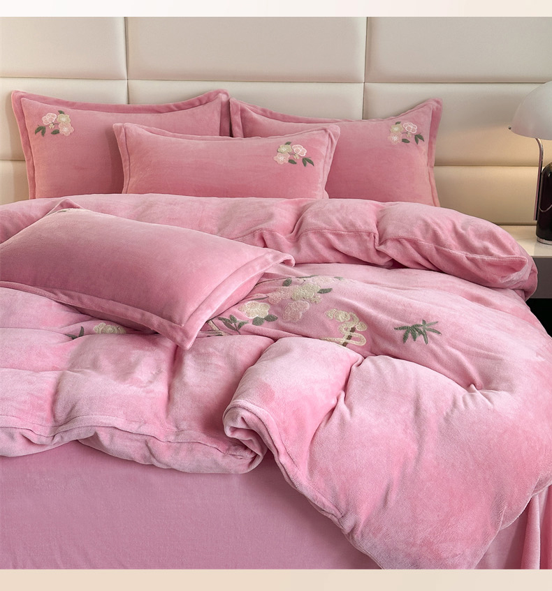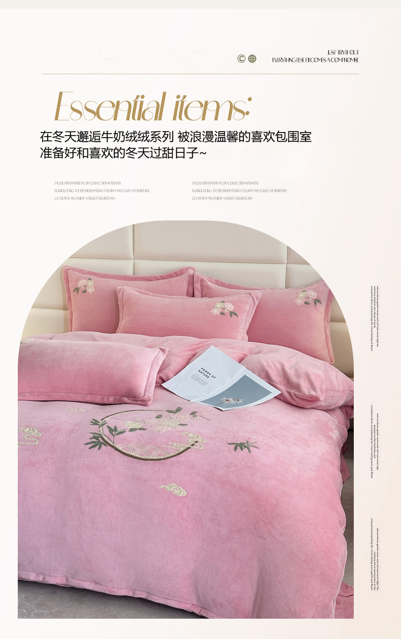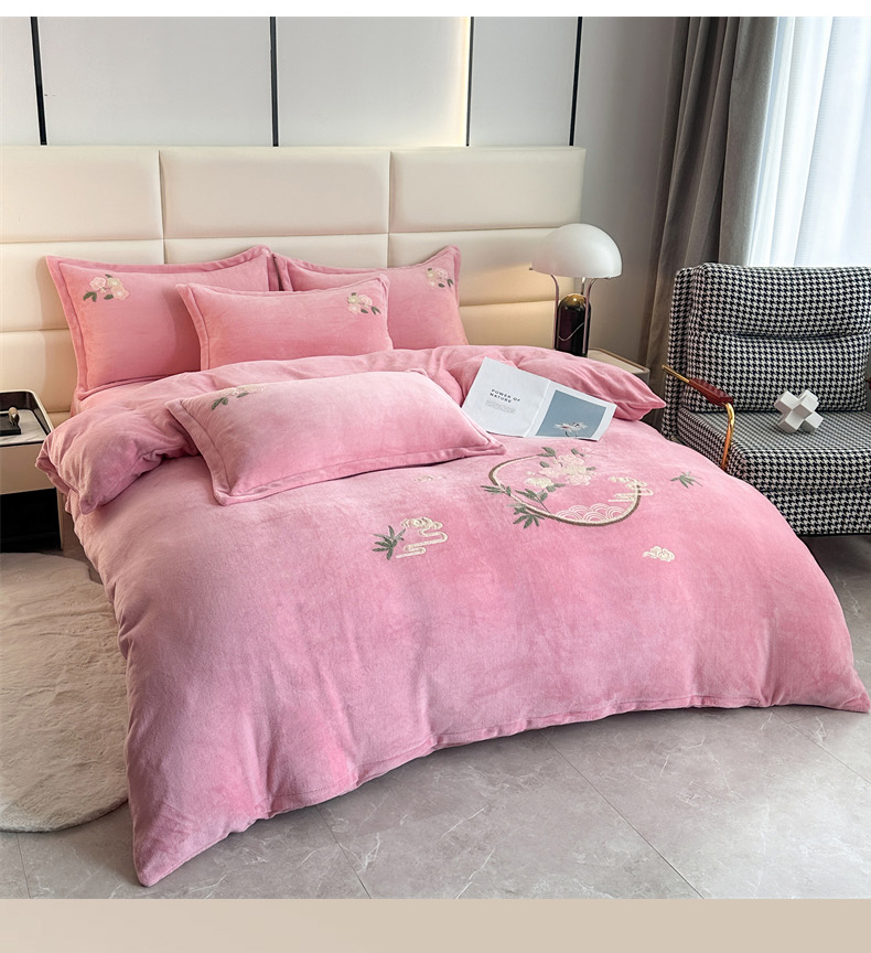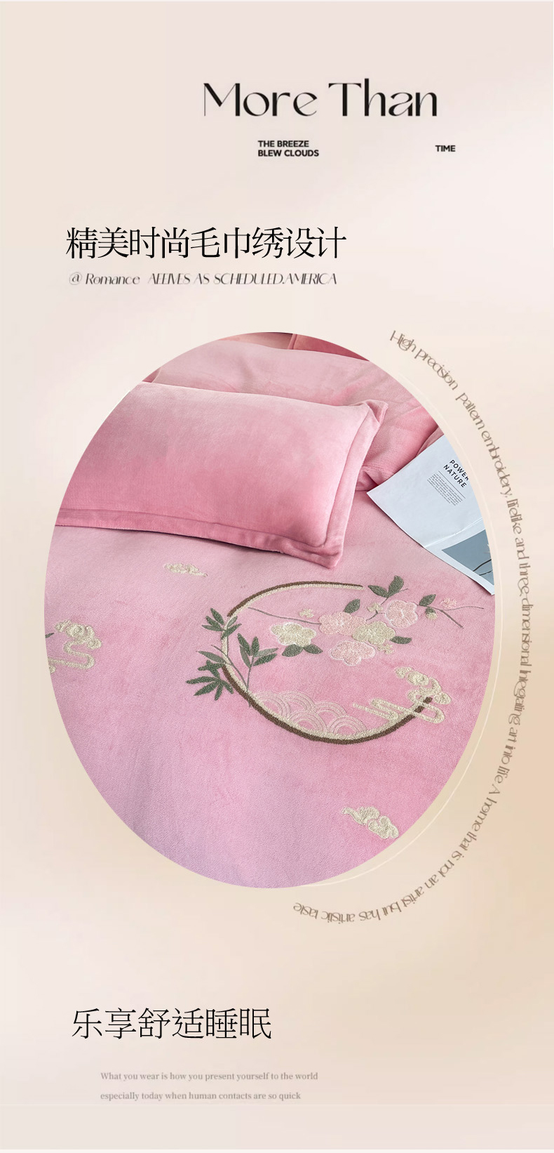 恋佳居 2025新款牛奶绒180克毛巾绣四件套 花间赋粉色
