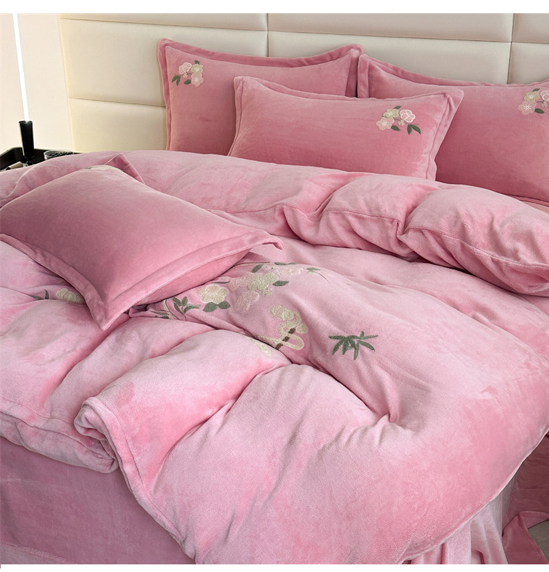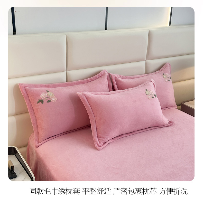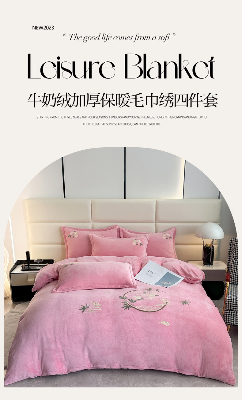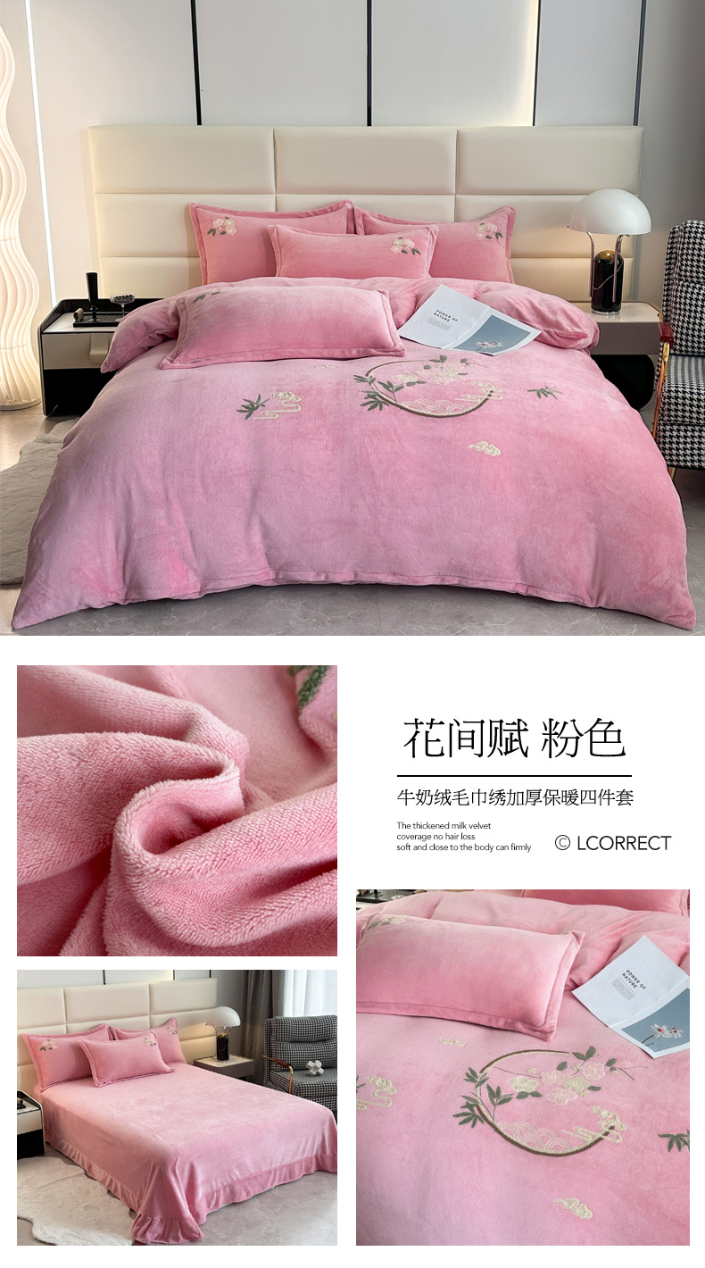 商品名称:恋佳居 2025新款牛奶绒180克毛巾绣四件套 花间赋粉色