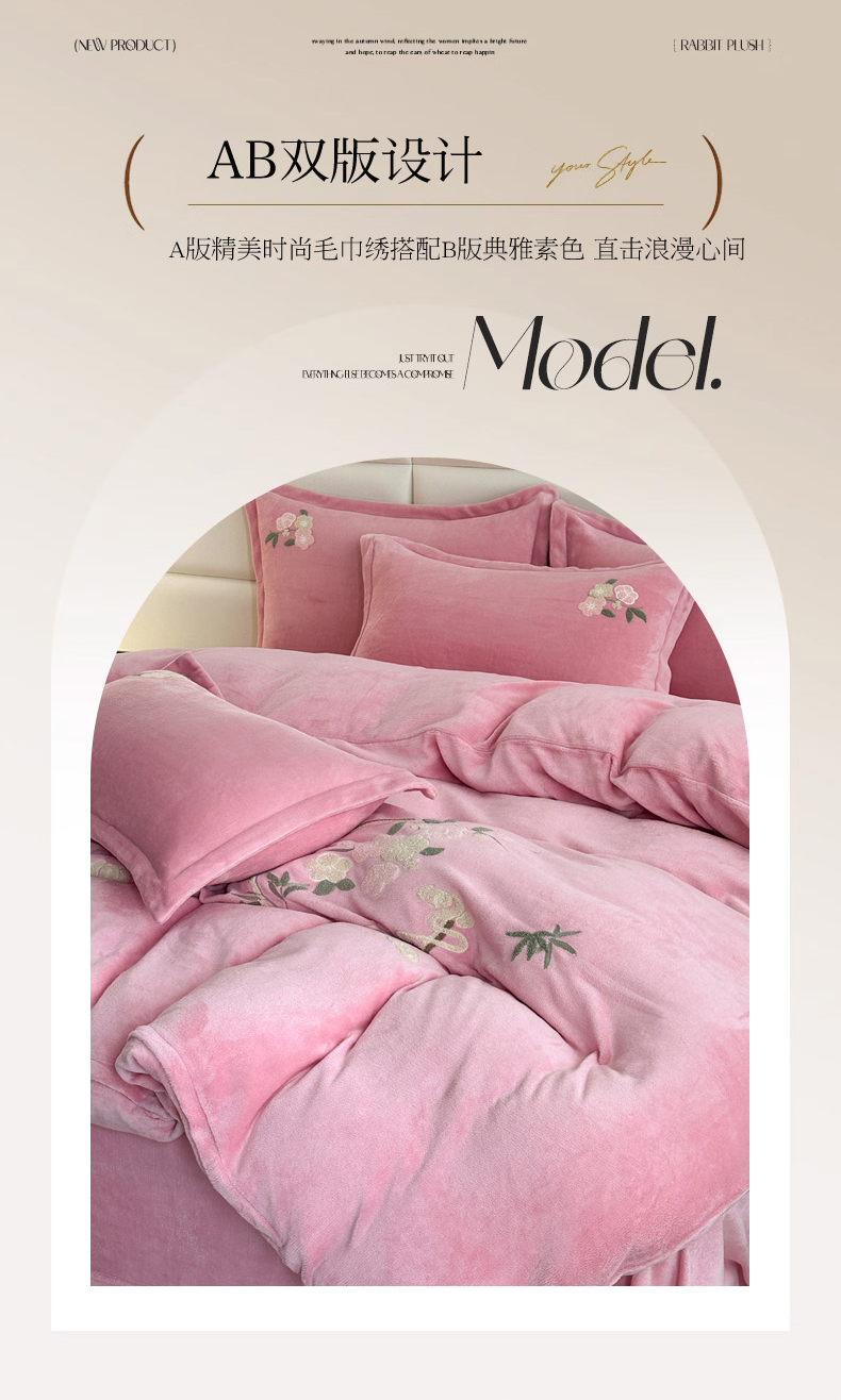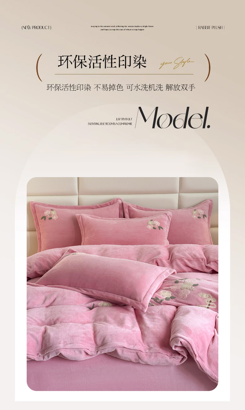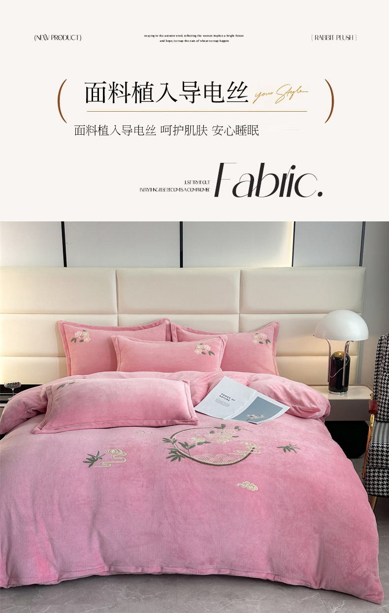 商品名称:恋佳居 2025新款牛奶绒180克毛巾绣四件套 花间赋粉色