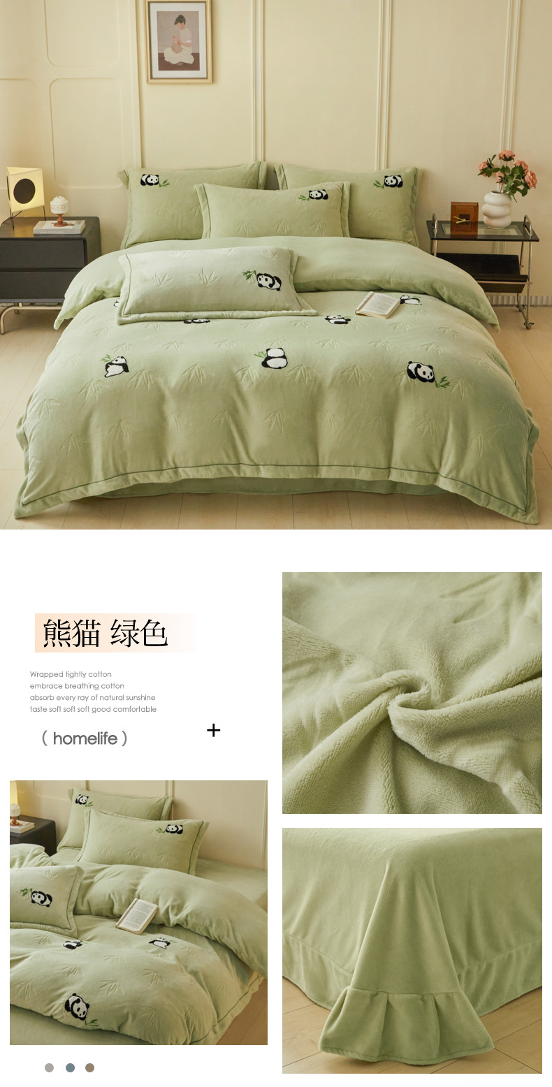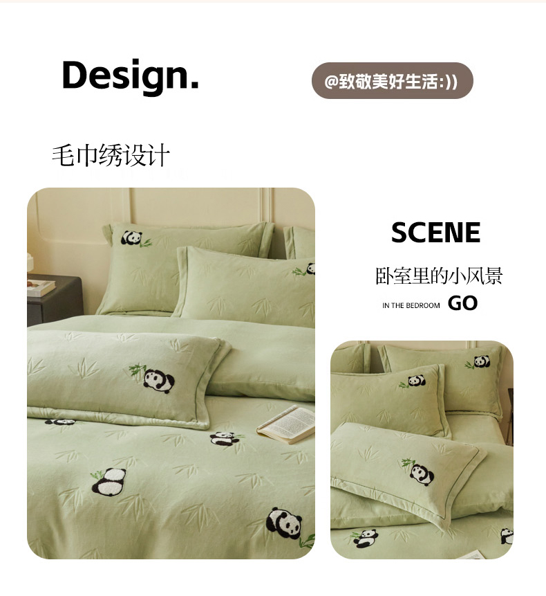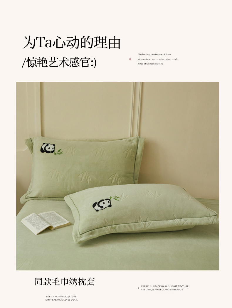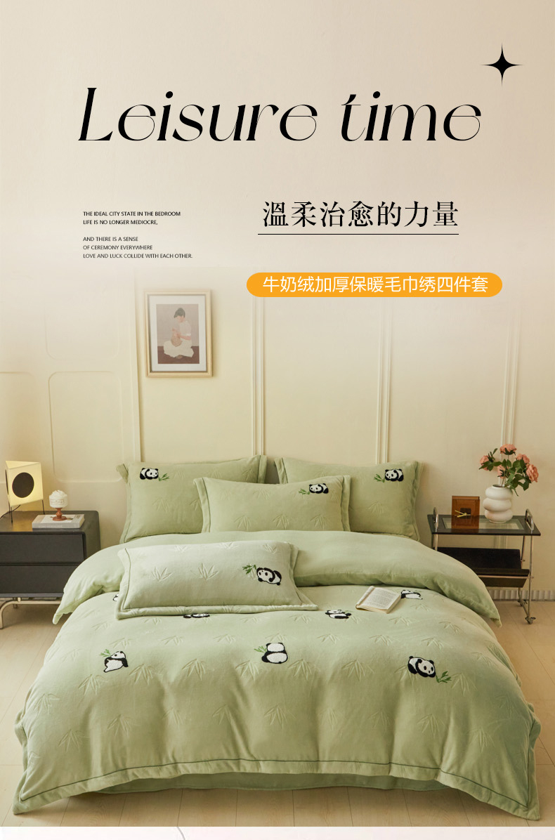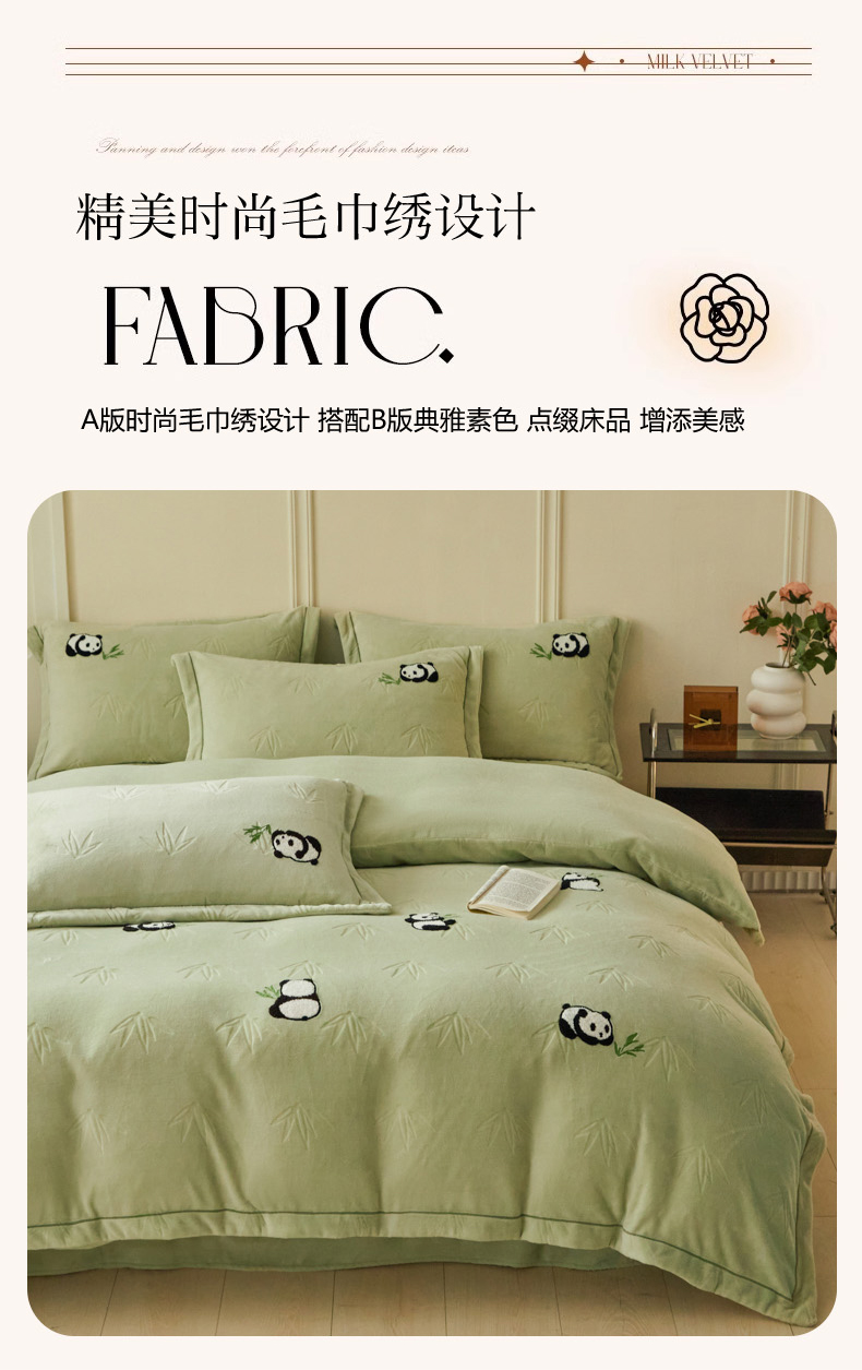 商品名称:恋佳居 2025新款高克重全工艺牛奶绒毛巾绣四件套 熊猫绿色